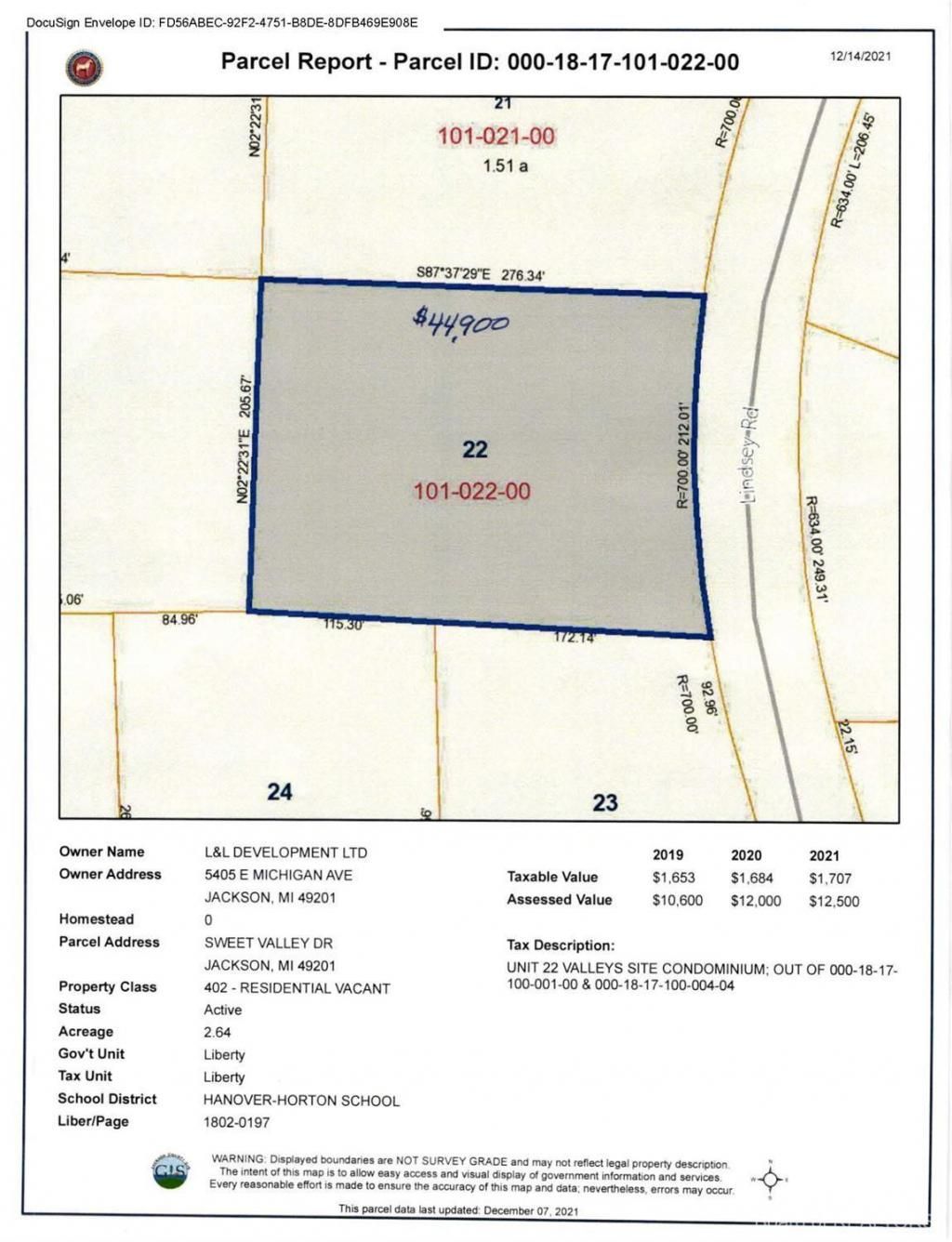 This land located at 0 Lindsey Unit 22 Drive, Jackson, MI 49201 is currently listed for sale with an asking price of $44,900. The property has approximately 2.64 Acres. Search Jackson real estate on www.ikeyrealty.com today.