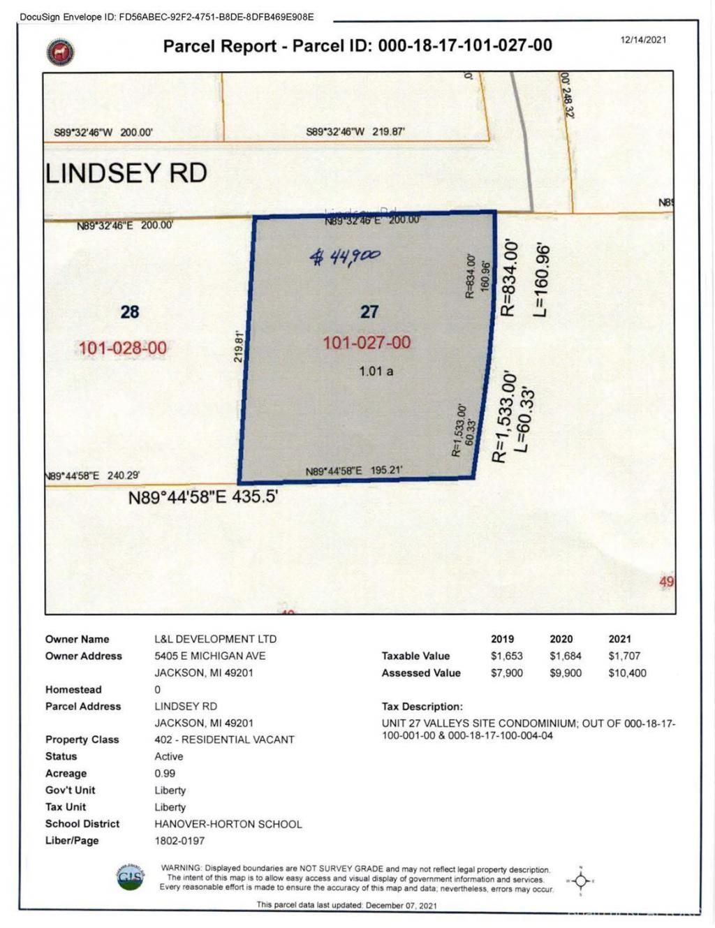 This land located at 0 Lindsey Unit 27 Road, Jackson, MI 49201 is currently listed for sale with an asking price of $44,900. The property has approximately 0.99 Acres. Search Jackson real estate on www.ikeyrealty.com today.
