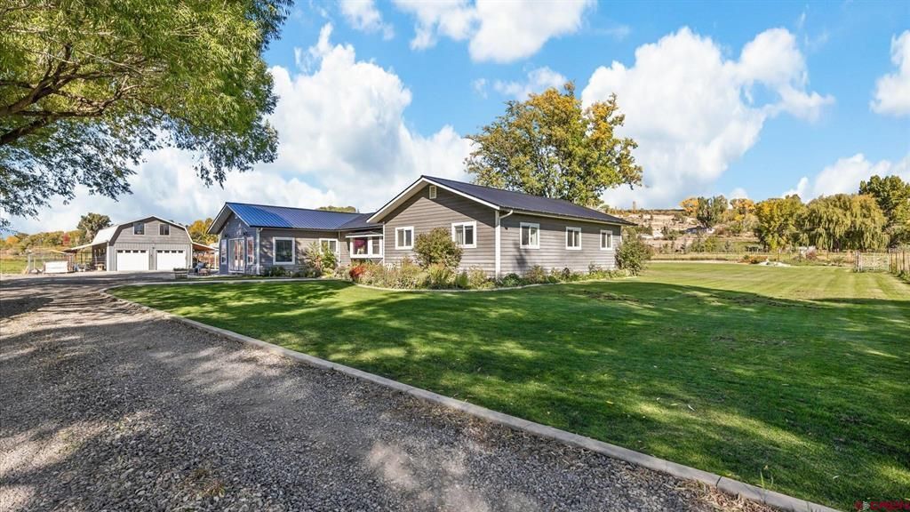 Set on 6 +/- irrigated acres in the heart of the North Fork Valley, this beautifully maintained ranch-style property offers the rare combination of privacy, productivity, and postcard-worthy mountain views ??? all just minutes from Hotchkiss and Paonia. The home features 4 bedrooms, 3 bathrooms, and a thoughtfully designed single-level layout filled with natural light. Warm hardwood floors, updated finishes, and an inviting kitchen with a large island creating a welcoming space for both everyday living and entertaining. Step outside and take in sweeping north-facing views of the West Elk Mountains, with iconic peaks rising above rolling pastures ??? a view that never gets old and only gets better at sunrise and sunset. This property truly shines outdoors. A custom stamped concrete patio provides the perfect setting for relaxing evenings, outdoor dining or hosting friends and family. Adding a truly unique touch is a grain silo converted to a covered BBQ/Bar area ??? thoughtfully designed for summer cookouts, celebrations and unforgettable North Fork sunsets. With 6 irrigated acres, ample irrigation water, and fully fenced pasture, it???s perfectly suited for horses, livestock, hobby farming, or orchard use. The land is level, usable, and well cared for ??? ready for your vision. This property also offers exceptional versatility with multiple outbuildings. One building has been converted into a game room and hangout space, while retaining the ability to function as a garage with loft storage if desired. The second is currently used as a garage, featuring additional covered parking/storge built off the side. These areas provide ample space for vehicles, equipment, recreational toys or projects. Whether you???re looking for a horse setup, hobby farm, peaceful retreat, or a place to put down roots with room to breathe, this is North Fork Valley living at its finest ??? views, water, land, and comfort all in one. Schedule your private showing and experience it in person ??? this one must be seen to be fully appreciated.