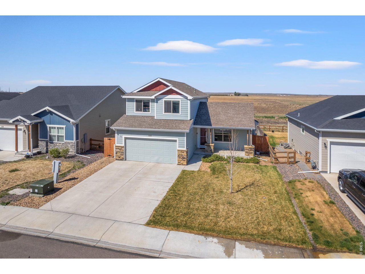 Welcome to 1110 Coyote Ln in Wiggins, Colorado, where modern comfort meets small-town living. Built in 2020 and situated on a 6,120 sq ft lot, this well-maintained home offers a functional layout and quality finishes throughout. Step inside to find vaulted ceilings, hardwood flooring, and a cozy gas fireplace that creates a warm, inviting living space. The kitchen is designed for both everyday living and entertaining, featuring granite countertops, stainless steel appliances, and plenty of cabinetry for storage. This home offers 3 bedrooms and 3 bathrooms, including a spacious primary suite complete with a full en suite bathroom, tub-to-ceiling tile, and a walk-in closet. Convenience is key with laundry hookups available on both the main level and in the basement. Outside, enjoy a covered back deck overlooking a fully fenced backyard with no rear neighbors, providing added privacy and space to relax or entertain. A 2-car attached garage rounds out the property.