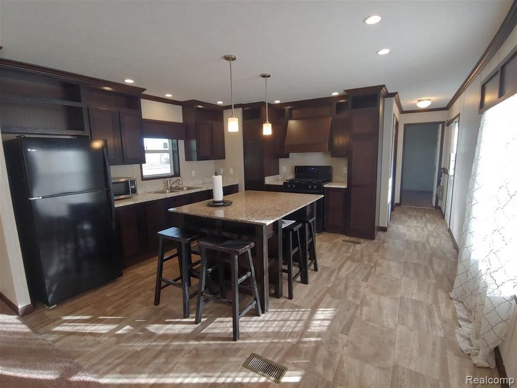 Practically brand-new single-wide home loaded with upgrades! This 3-bedroom, 2-bath home features a spacious primary suite complete with a private bath and walk-in closet. The kitchen offers abundant cabinetry and counter space, highlighted by a granite island with included bar stools, a propane stove, upgraded vent hood, and pantry storage. Additional features include custom window treatments, a separate laundry room with extra storage, central air, and upgraded insulated underpinning for added efficiency. Step outside to a large backyard shed—perfect for storing tools, equipment, and recreational gear.