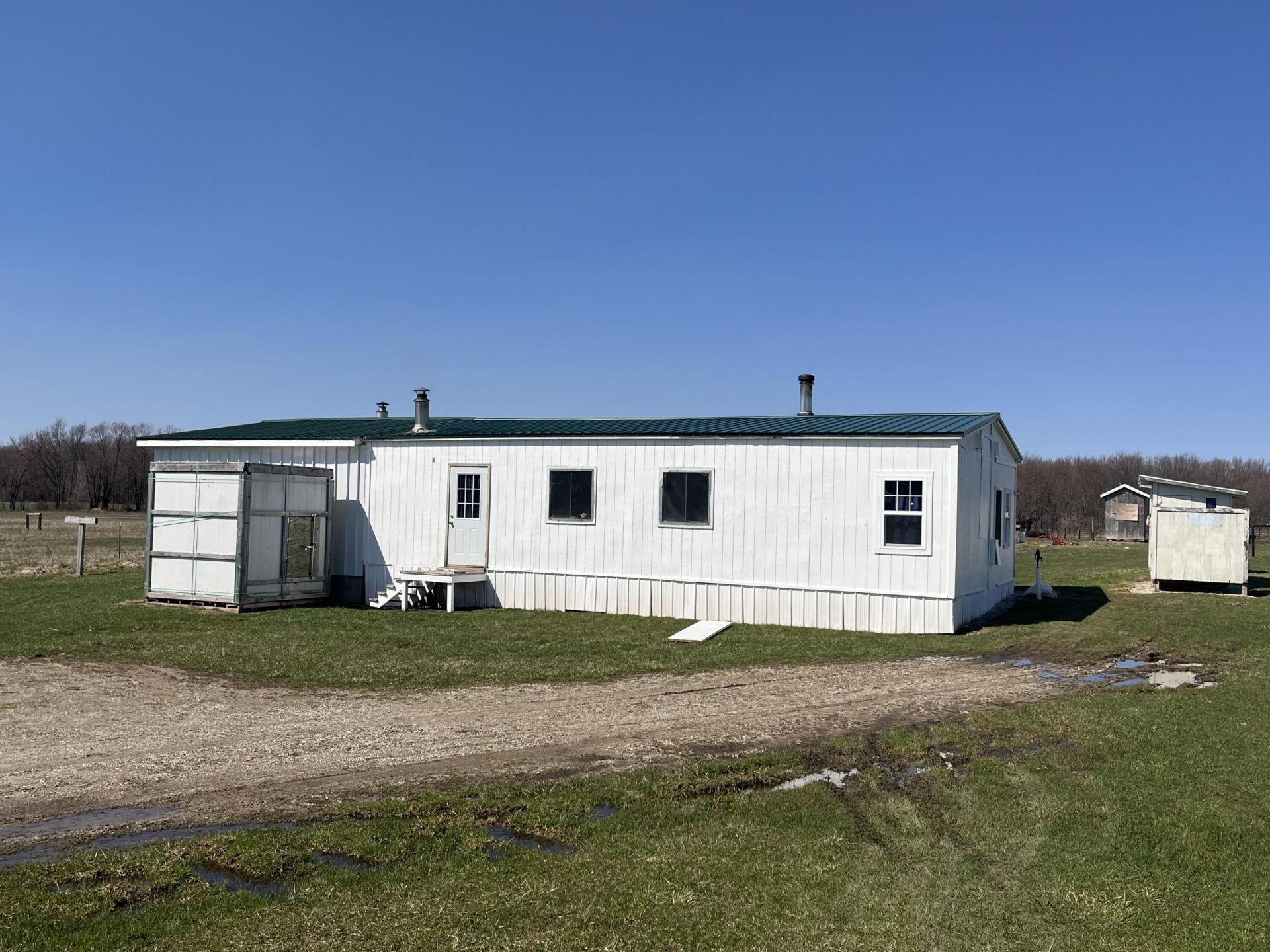 Great opportunity to set up your own little homestead, Features remodeled Manufactures home with addition sitting on 5 acres (pending split approval) on blacktop rd.Home features large open living concept, 1 large bedroom, Kitchen & dining areaHome only has wood heat, wood stove is reserved, No electric, but the wiring is in the walls, There is some indoor plumbing with an operating drainfield, a room ready to set up as a bathroom, There is a running water,but comes from a neighboring well.couple of outbuildings and garden area.