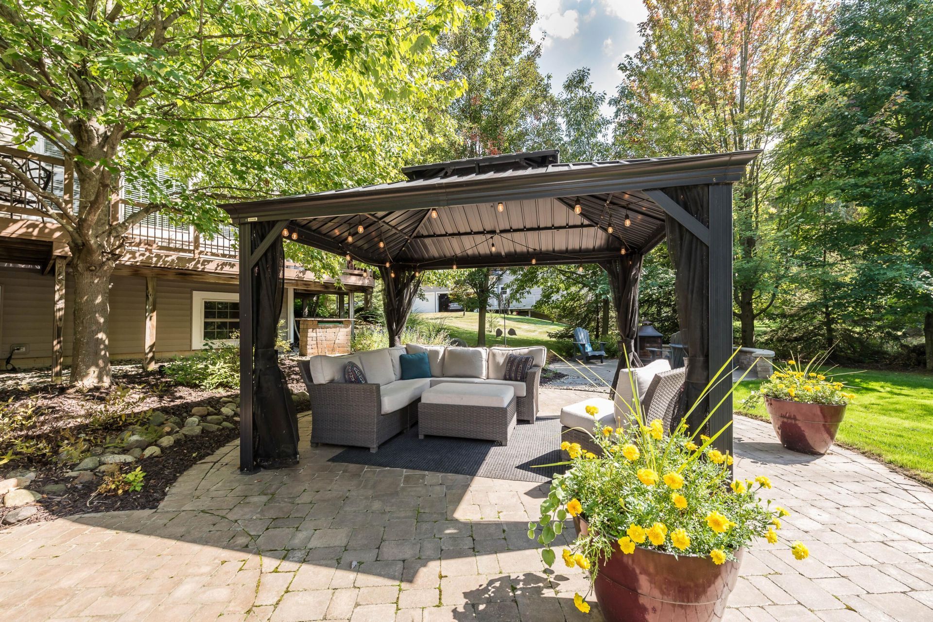 This Executive Centennial Park home offers direct access to walking/biking trails, sports fields & recreational amenities. This home presents 3400+ sq ft of fin. living space, complemented by an addl 1,500 sq ft L/L featuring a private theater rm, expansive game & recreation area & a sophisticated wet bar--designed for elevated entertaining. Highlights include private office, a chef-inspired open kitchen, new quartz countertops, center island, dedicated casual dining area & homework station all with views of the beautiful nat stone fp. For more formal dinners, serve guests in the FDR, filled with ambiance. Main Fl amenities also include dream laundry/mudroom area w/ custom built-ins & stunning hardwood and tile flooring throughout. Upstairs you will find 3 generously appointed bedrooms, plus a lavish primary suite. The award-winning grounds are a private retreat w/ architectural LED lighting, a focal waterfall, wraparound two-tier composite decking, gazebo, firepit & EV charging.