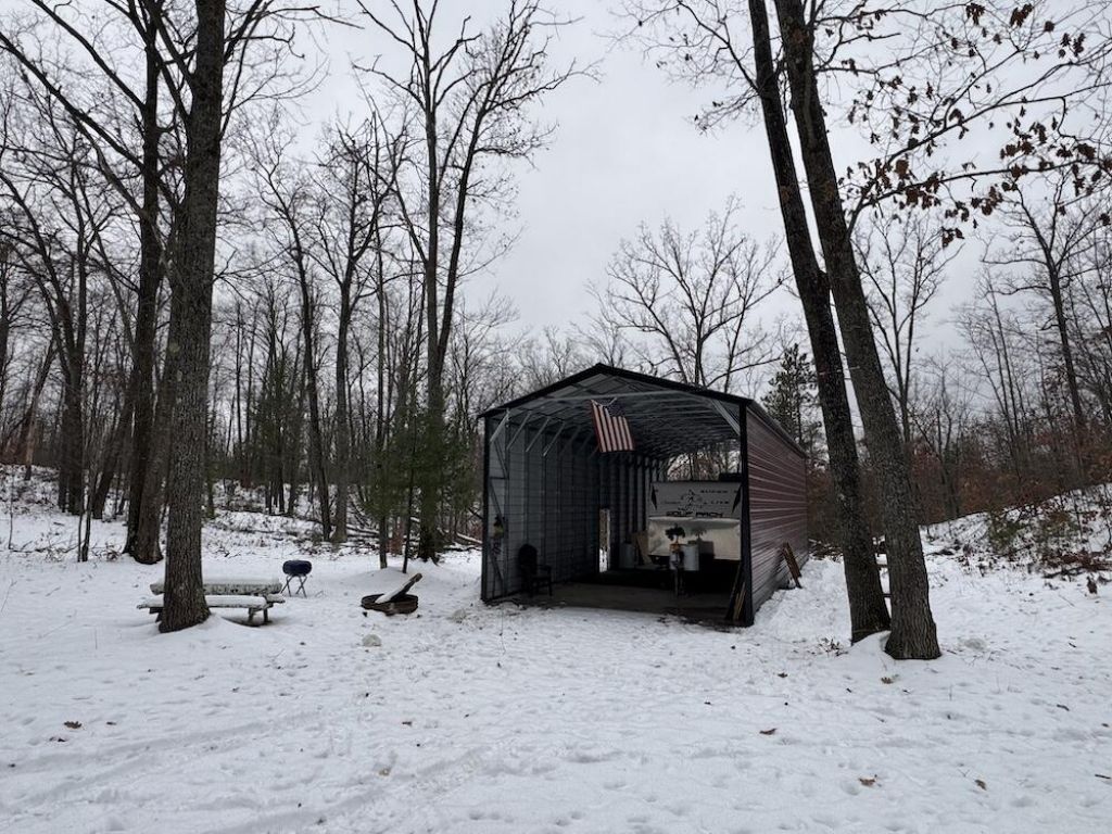 Beautifully rolling 20-acre wooded parcel in Atlanta, Michigan, just off M-33 and south of Canada Creek Ranch. Atlanta is the Elk Capital of Michigan. This private recreational property offers exceptional access and improvements, making it ideal for hunting, camping, or future development in an awesome area of our state.The land is fully surveyed, including a private drive easement providing great access while keeping the property secluded. The property borders State Forest to the north and Briley Township land to the south, offering unmatched privacy and thousands of acres of nearby public land providing tons of recreation opportunities.A newly constructed open-ended metal building (2023) measures 20 x 50 x 14, built with 12-gauge steel and engineered for a 50 lb. snow load per square foot, all sitting on a 21 x 62 x 4 concrete slab provides plenty of storage. A gravel drive has been cut into the property for easy access. The current owners utilize a Toy Hauler camper stored inside the barn for living accommodations. They bring in generator power and water which provides all the comforts of home. There is an artisan well, providing confidence that water will not be an issue in the future. The 2011 Forest River Toy Hauler camper is in excellent condition and may be available for purchase with the property.Outdoor enthusiasts will appreciate the four hunting platforms and two hunting blinds already in place. The terrain features a gentle roll and heavy timber, creating both beauty and functionality for wildlife habitat. This one is in an excellent location and has everything you need to make it an awesome up north getaway.