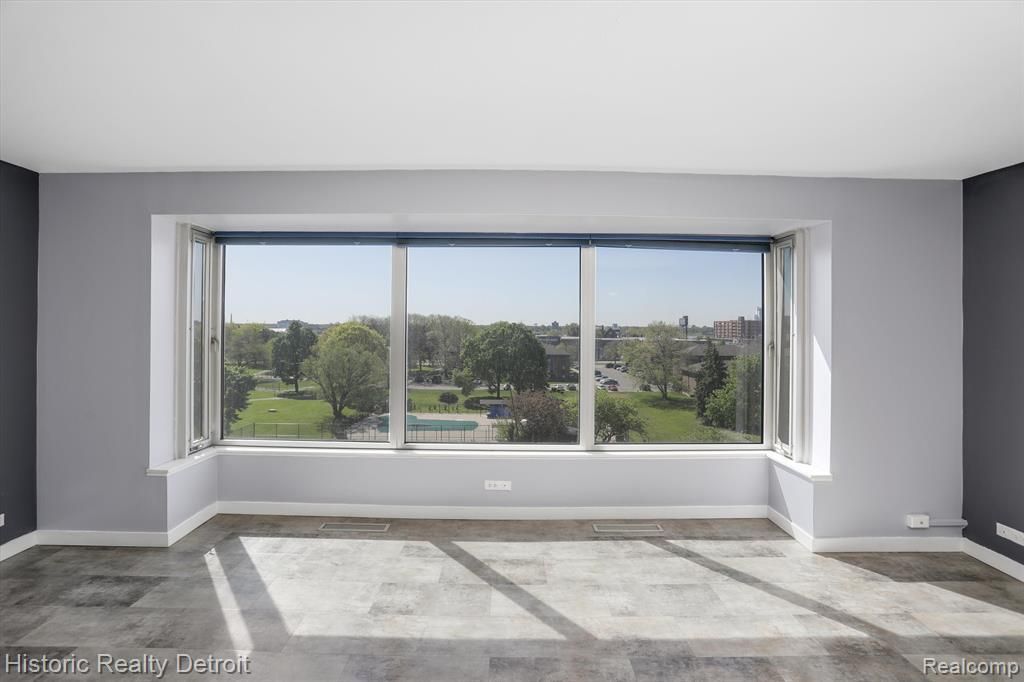 Sleek One-Bedroom Alert with Scenic South-Facing Views! Welcome to #305 at 1300 East Lafayette — a modern, sun-filled one-bedroom, one-bath condo that offers both comfort and style in one of Detroit’s most iconic addresses. With a spacious, open-concept layout and large south-facing windows, this home is flooded with natural light and overlooks the newly renovated grounds, tennis courts, and two heated outdoor pools. The kitchen is thoughtfully updated with granite countertops, stainless-steel appliances, and contemporary cabinetry, opening into a bright and airy living space perfect for both relaxing and entertaining. The bedroom is generously sized, with serene views and ample closet space, while the full bath features clean, timeless finishes. Flat-screen TVs in both the living room and bedroom are included, offering move-in-ready convenience and modern comfort. Amazingly affordable, this unit also comes with all the benefits of a full-service building. Enjoy 24-hour concierge service, a state-of-the-art fitness center with floor-to-ceiling windows, on-site laundry, secure entry, and optional parking — all set within beautifully maintained, landscaped grounds. Located just steps from downtown Detroit, Eastern Market, and the Detroit Riverwalk, you’ll enjoy easy access to the best of the city’s dining, culture, shopping, and green space. Whether you’re looking for a stylish place to call home or a city-based retreat, Unit 305 delivers convenience, comfort, and vibrant urban living — at a price point that’s hard to beat. Come experience the best of Lafayette Park — schedule your private tour today.