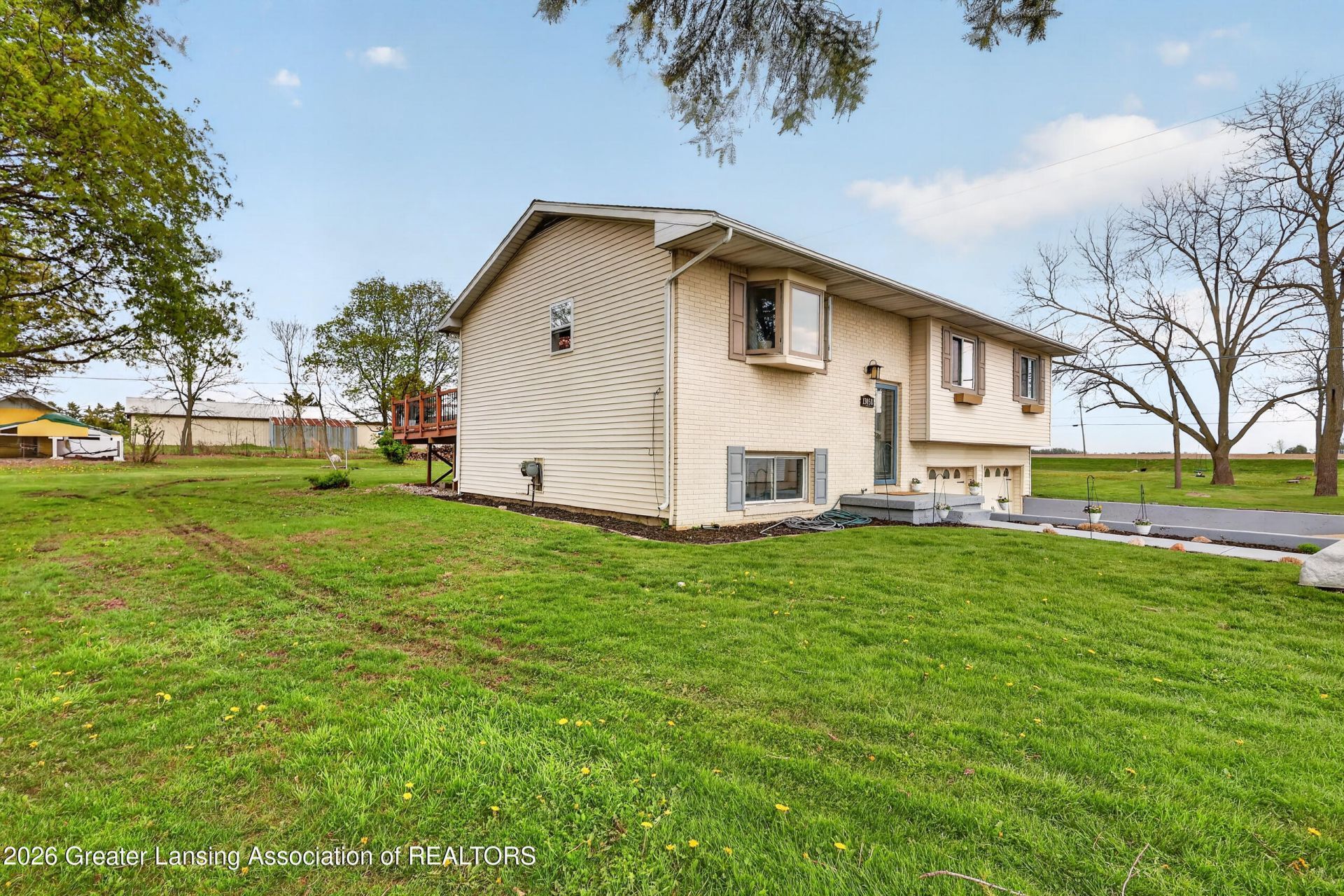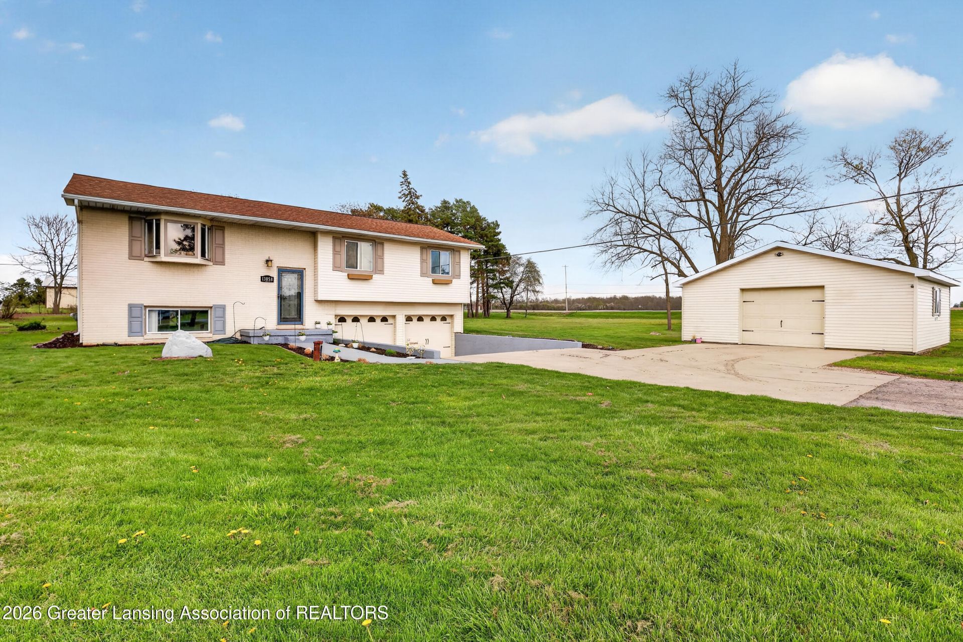 Welcome to 13058 Benton Road in Grand Ledge?offering space, functionality, and peaceful country surroundings. Featuring a new HVAC system and water treatment system, this home provides comfort and peace of mind. Enjoy a bright living room with a charming garden window. The dining area flows between the living room and kitchen, while the pass-through kitchen offers a peninsula and slider to the back deck. Down the hall are a full bath and three bedrooms, including a primary suite with en-suite bath. The lower level includes a rec room, fourth bedroom, laundry, and access to the attached 2-car garage. Situated on a large L-shaped lot with a detached 1-car garage and chicken coop, just minutes from town and Grand Ledge Schools. Schedule your showing today! With thoughtful updates and plenty of room to enjoy both inside and out, this home is ready for its next chapter. Schedule your showing today!