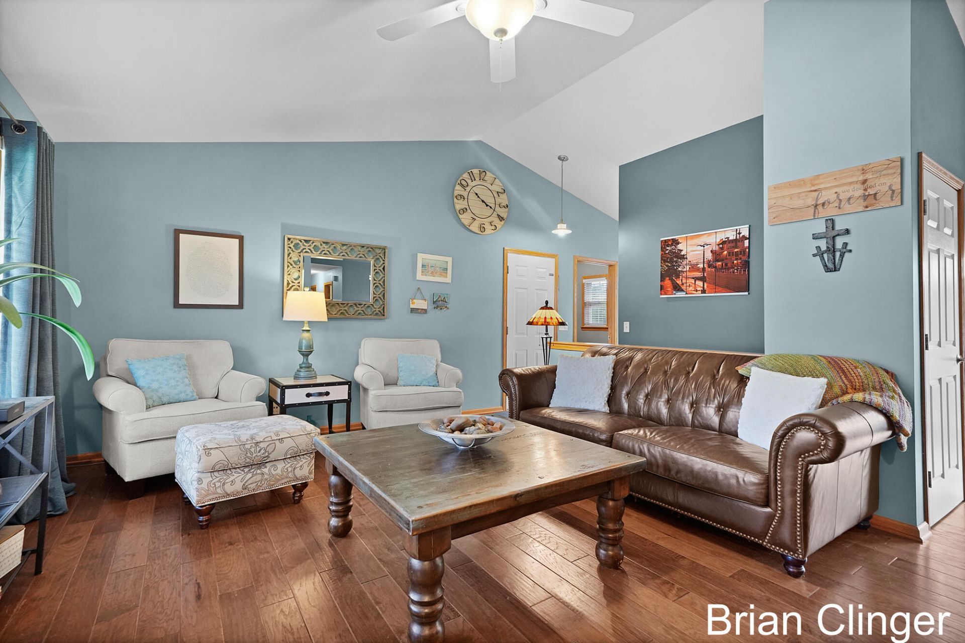 Beautifully updated 3 bedroom ranch featuring cathedral ceilings, updated granite countertops, and a slider that opens up to an amazing back yard and deck for relaxing and entertaining. The finished lower level features recessed lighting, a wet bar, a 1/2 bath and office , w/built in safe, that could be a possible 4th bedroom. The attached finished garage has an added workshop off the back, floor drain, and hot and cold water. Wonderful location with a walking/biking trail leading to both Hofma Park and the Schmidt Heritage Sports Complex that includes soccer fields, baseball fields, and pickle ball courts. The home is also 4.5 miles from downtown Grandhaven and the Coast Guard Festival. Open house Sunday from noon to 2PM. Offers due Wednesday by 1PM.