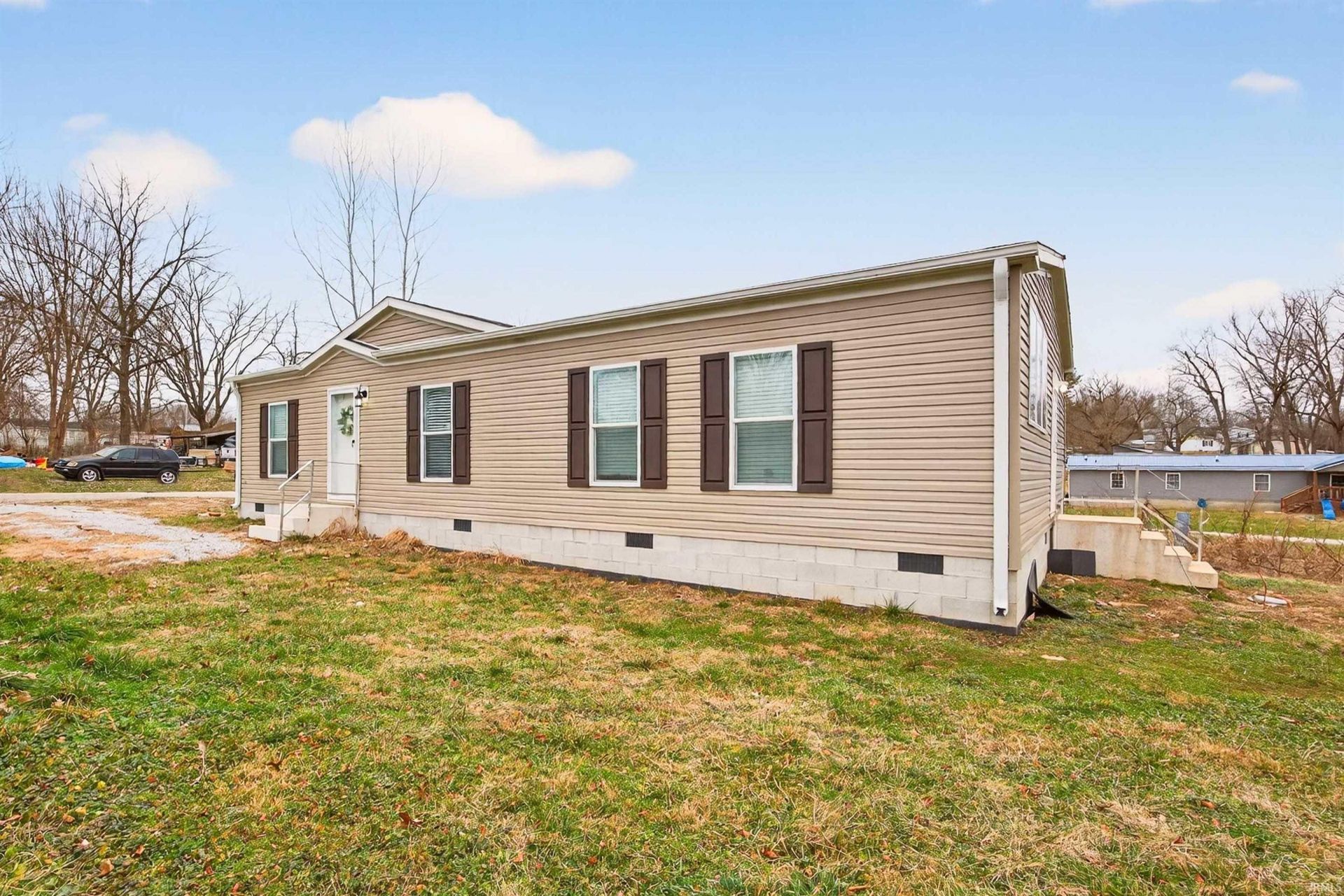 NEW. SPACIOUS. MOVE-IN-READY. Built in 2023, this THREE bedroom, TWO bathroom home is a great option for first-time buyers or those looking for additional space to grow. Situated on half an acre lot, the home features a bright open-concept layout connecting the living room and kitchen, creating a comfortable and inviting space for everyday living and entertaining. The kitchen offers plenty of cabinet storage, while the living room is enhanced by a cozy electric fireplace and abundant natural light throughout. Just off the main living area, you'll find the primary suite, complete with a walk-in closet and a private, relaxing retreat. To the left of the living space are two additional bedrooms and a second full bathroom, offering a functional and well-planned layout. Additional highlights include main-level laundry for added convenience. The home comes fully equipped with kitchen appliances, washer, and dryer, making it truly move-in ready. Utilities are provided by Duke and N Lawrence Water. With its modern layout, thoughtful features, and excellent value, this home is ready to welcome its next owner.