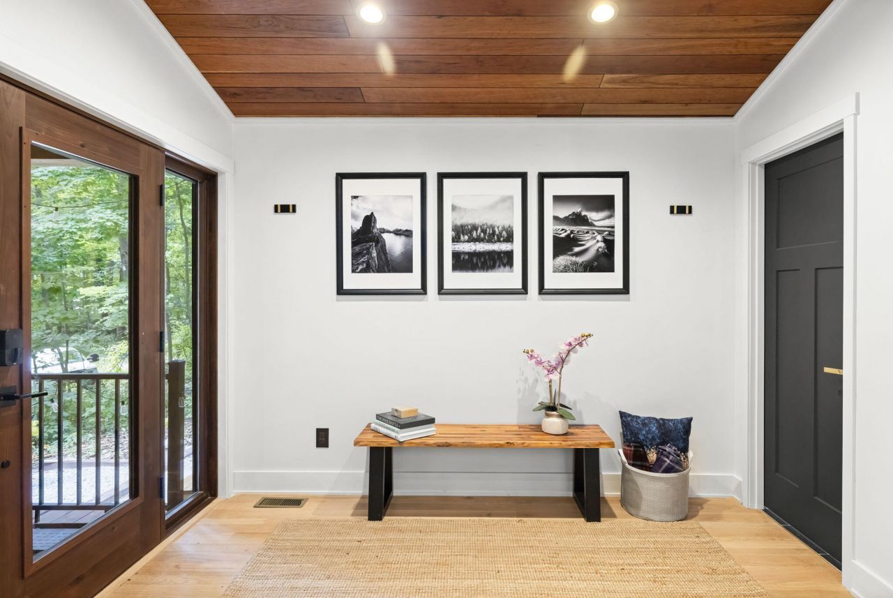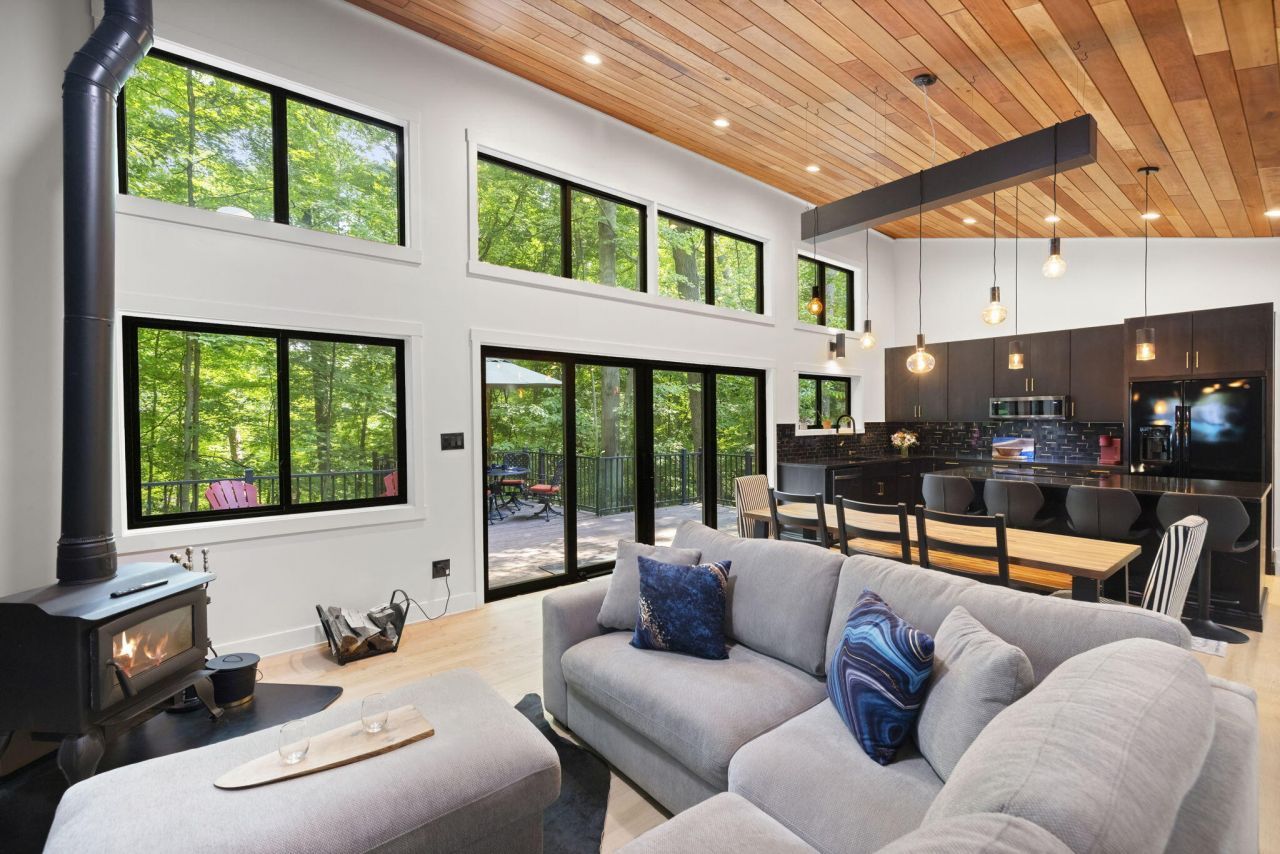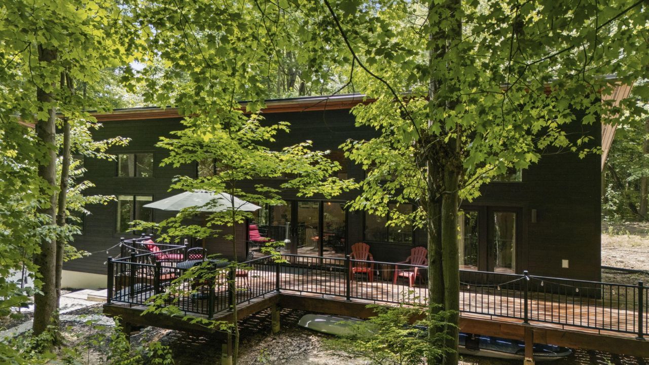 Set over 350 feet from the road down a winding drive is this gorgeous 3 years young, custom built home set on a private ravine in SW Michigans wine country. Custom built with locally grown and milled lumber; fitted with custom finishes, solid hardwood floors, vaulted ceilings, and walls of glass. Featuring a spacious primary suite, large kitchen, open living/dining floorplan, main floor laundry; all with stunning views. Outside its nothing but Big Deck Energy here with enough space to entertain a crowd! Soak in the hot-tub, build a fire in the firepit, all while soaking in the centuries old forested setting. Short term rentals are not allowed, 30 day minimum on rentals.