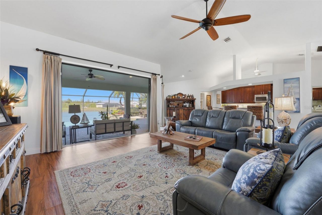 Rarely available waterfront home on one of South Gulf Cove's widest and most active waterways, offering approximately 250 feet of breathtaking water views and 116 feet of prime waterfrontage. Boating enthusiasts will appreciate the covered dock and lift with only one bridge to open water.From the moment you step through the front door, the view is nothing short of astonishing-your eyes are drawn through the open living space to the expansive lanai, infinity-edge pool and spa, and the scenic Zephyr Waterway beyond. Designed for the Florida lifestyle, this 3-bedroom, 2-bath residence features a wet bar off the kitchen, perfect for entertaining, and an oversized garage plus a separate storage shed for added convenience.Outdoor living shines with a recently upgraded pool area, including a new salt injector (2025), pool pump (2025), pool heater (2024), and a new spa controller (2026). The lanai structure and screen were replaced in 2023, creating an ideal space to relax and enjoy lush tropical landscaping and tranquil water views.Inside, the home offers numerous recent upgrades: a beautifully refreshed kitchen with new granite countertops, refrigerator, cooktop, and dishwasher (all 2025), along with upgraded cabinetry (2022). Faux wood vinyl flooring was installed in 2022, complementing the home's coastal feel. Additional major improvements include a new roof (2022), HVAC system (2022), and a recently rebuilt and upgraded irrigation system.This exceptional waterfront property delivers panoramic views, direct boating access, and thoughtful upgrades throughout-an ideal blend of comfort, functionality, and Florida waterfront living.