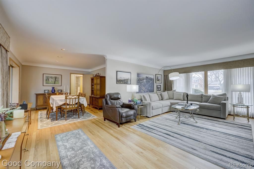 ***All offers are due: Monday, March 23, 2026 at 12:00PM.*** Spacious brick ranch on sought-after Lochmoor Blvd in Grosse Pointe Woods featuring 4 bedrooms, 2.1 baths, and a thoughtfully designed mid-century modern layout with generous living spaces and a large private backyard. A welcoming front foyer leads into expansive living and dining rooms with hardwood floors, a charming fireplace, and oversized windows that fill the home with natural light. The dining area flows into a bright sunroom with sliding doors overlooking the backyard and patio. The kitchen offers abundant cabinetry, a cozy breakfast nook, and premium appliances including a built-in Sub-Zero refrigerator, Viking oven, and GE Signature cooktop. A private den with built-in shelving provides an ideal home office or study. The bedroom layout offers both privacy and flexibility. Two spacious bedrooms are located on one side of the home and share a stunning retro tile full bath. On the opposite wing—accessed through an exposed brick hallway with a convenient side entrance—you’ll find two additional large bedrooms connected by a full bath, including the primary suite with its own spa-like bathroom. Oversized attached two-car garage includes an EV charger and a myQ-enabled opener for smart access. The full basement offers excellent potential for additional living space, recreation, or storage and includes the washer and dryer. Additional features include two WiFi-enabled Ecobee thermostats, a keypad front door lock. Residents of Grosse Pointe Woods enjoy exclusive access to Lakefront Park with boat slips, a pool, pickleball courts, and a community recreation center, all close to schools, parks, shopping, and dining. Welcome Home!
