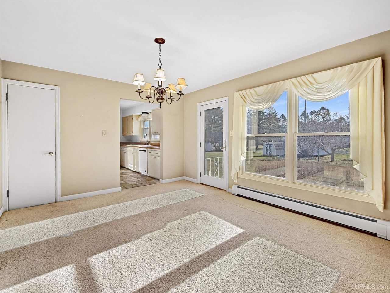Two bedrooms on the main floor and a non-conforming bedroom in the basement. The attached garage offers homeowners a protected place for their vehicle and a warm, convenient entry during the winter months we know so well here in the beautiful Upper Peninsula of Michigan. Step inside and youre welcomed into a home designed for easy, comfortable living. This ranch-style layout offers a nicely updated kitchen, a formal dining room, and a spacious living area perfect for gatherings with family or guests. Entering through the front door, youll appreciate the generous foyer with a convenient guest closet. The main floor includes two well-sized bedrooms and a full bath, giving you everything you need on one level. The finished basement adds valuable living space with a cozy family room, a half bath, and a large non-conforming bedroom?ideal for guests, hobbies, or a home office. Out back, enjoy a patio and an expansive yard with room for gardens, play areas, or simply relaxing and taking in the view. The location is a bonus: close to the athletic field for high school home games and just minutes from the golf course. With year-round activities nearby and easy access to surrounding areas, this home is a wonderful place to settle in and enjoy the best of the community. FYI the repairs to the ceiling by the fireplace was done a couple of years ago and the ceiling has not been repainted since the repairs were completed.