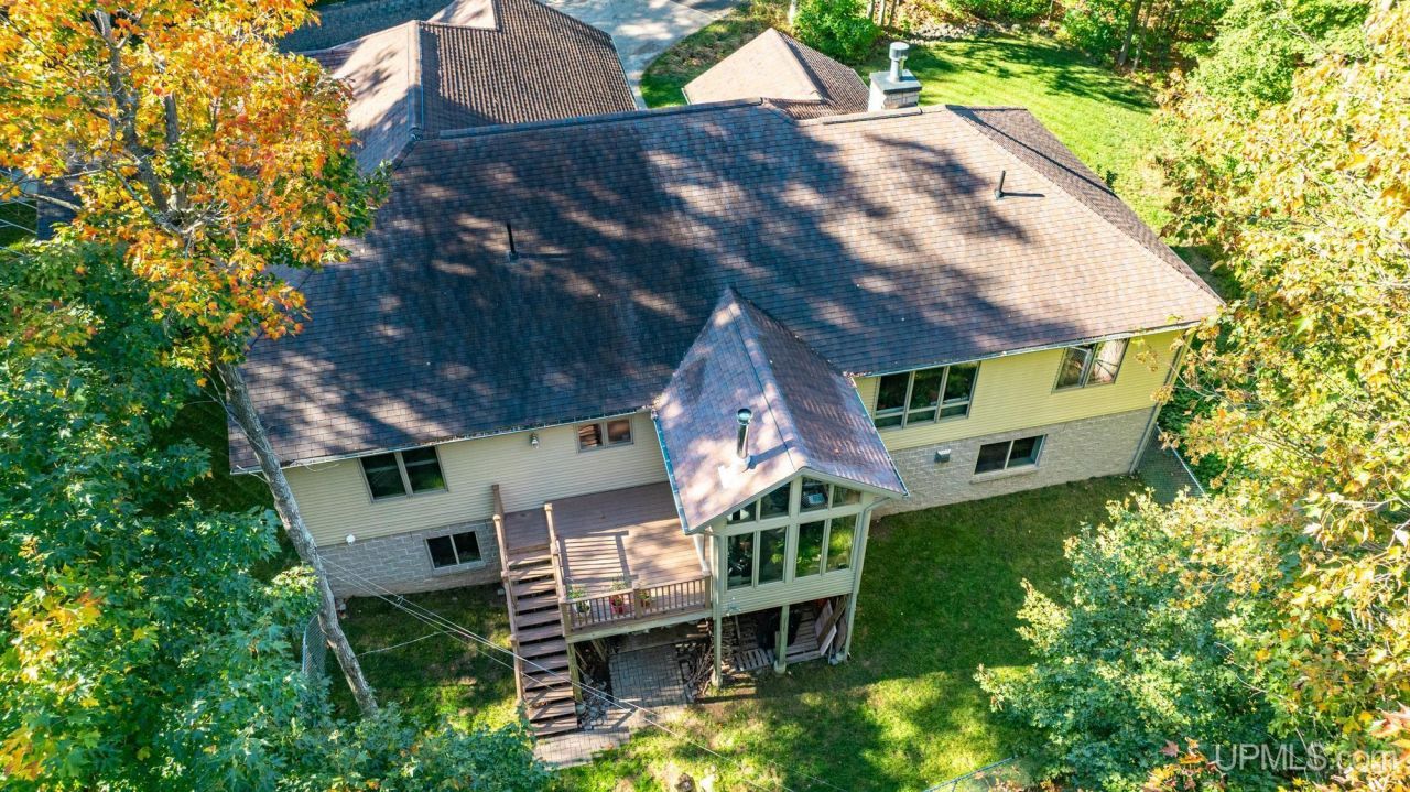 Experience exceptional seclusion within the city in this well-appointed 3-bedroom, 3.5-bath residence, ideally located on a quiet low-traffic street near Michigan Tech & the amenities of Houghton. Constructed in 2006, this home offers quality finishes throughout & a floor plan suited to accommodate your lifestyle. The main floor features a spacious kitchen with granite countertops, Cherry cabinetry & a pantry, seamlessly connected to the dining area. The living room includes a double-sided gas fireplace shared with the office, which is enhanced by built-in library shelving & a custom rolling ladder. The primary bedroom suite provides convenient closet access, a well-designed 3/4 bath, & a jetted tub. Two additional bedrooms & 1 1/2 bathrooms are thoughtfully situated opposite from the primary suite for privacy. A sun-filled sitting room serves as a year-round heated sunroom & has a woodstove for supplemental heat. Also on the main level are laundry facilities with storage & a welcoming foyer. The lower level includes a large family/entertainment room complete with a wet bar featuring a granite counter and a gas fireplace, along with a sitting area adjacent to a 3/4 bathroom equipped with a combination steam room, shower & sauna. A cedar lined closet provides storage. The unfinished area could serve as a home gym and/or workshop area with direct walkout access to the backyard. The family room includes an overhead door connecting to the workshop area to share the television on a swivel post. Additional highlights include ceramic tile flooring, approx 9-foot ceilings on the main level & 8.5+/- foot ceilings on the lower level, central vac, central air conditioning, a whole house fan, ceiling fans, maple woodwork & doors, cultured stone fireplace, Cat5 wiring, 3 rooms wired for surround sound, and more. The insulated 4-car garage is fitted w/a gas space heater, 220 amp electrical connection, slat wall storage, & a car lift (negotiable). Set in a beautifully wooded environment, the exterior boasts trails, deck, partially fenced yard, brick, cultured stone & vinyl siding, paved driveway, retaining walls, & landscaping that includes lilacs & blackberries. This Wick panelized home offers numerous amenities & great value. --NOTICE: Information is believed accurate but not guaranteed. Buyers must inspect & verify all property details. Buyers accept all risks of inaccuracies, including but not limited to, acreage, lot size/location, sq footage, & utility availability/costs. Real estate taxes will be reassessed & may change significantly after sale; do not assume your tax bills will match the sellers. Taxes are not zero. GIS, apps & plat book pages/maps are not surveys. Audio/video recording may occur on the property; entry implies consent to recording. Buyer pre-approval or proof of funds documentation to be provided upon request. OFFERS: Please allow 72 hours for a response. Seller may set or change offer deadlines at any time with or without notice.