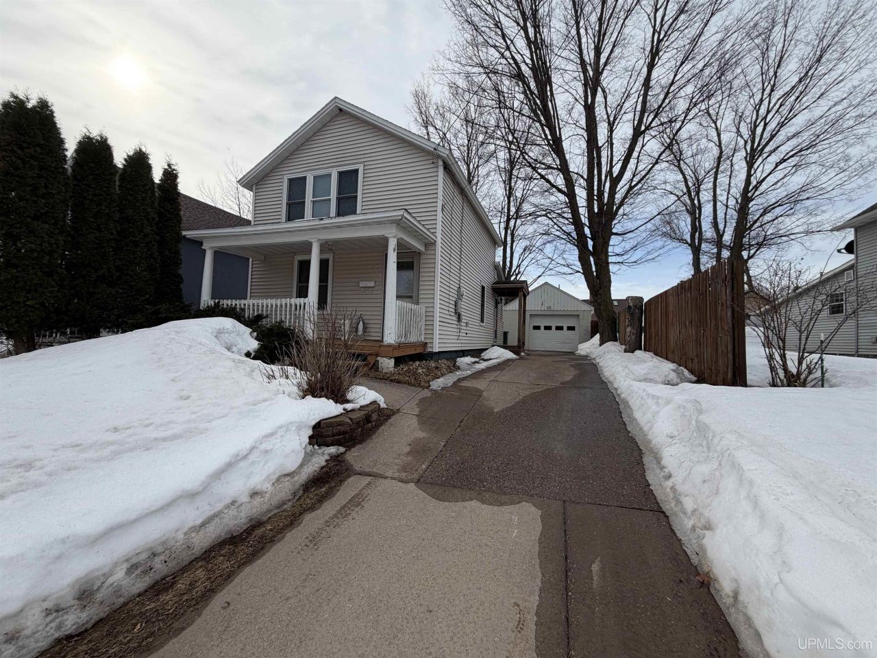 Charming 2-story home located within Marquettes city limits (across the street from Hurley Field) offering 2 bedrooms, one of which is accessible only from the main bedroom and 1.5 baths. This home features a spacious layout with a large dining room, plus an eat-in kitchen setup for added flexibility and convenience. The main floor laundry is located in the main level half bath, making everyday living easy and practical. Recent updates include new flooring in the dining and living room, adding a fresh touch to the main living spaces. Enjoy the back porch just off the kitchen, perfect for relaxing or stepping out into the backyard. The property also includes a 1-car + detached garage for additional storage and parking. Conveniently located just a few blocks from Cals Party Store, Huron Mountain Bakery, and Mare-z-Doats, this home offers easy access to local favorites while still providing a comfortable residential setting. A great opportunity for someone looking for a home with charm, convenience, and room to make it their own!