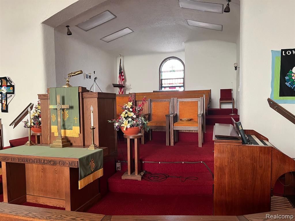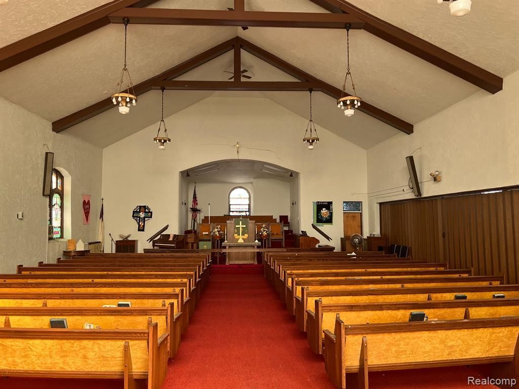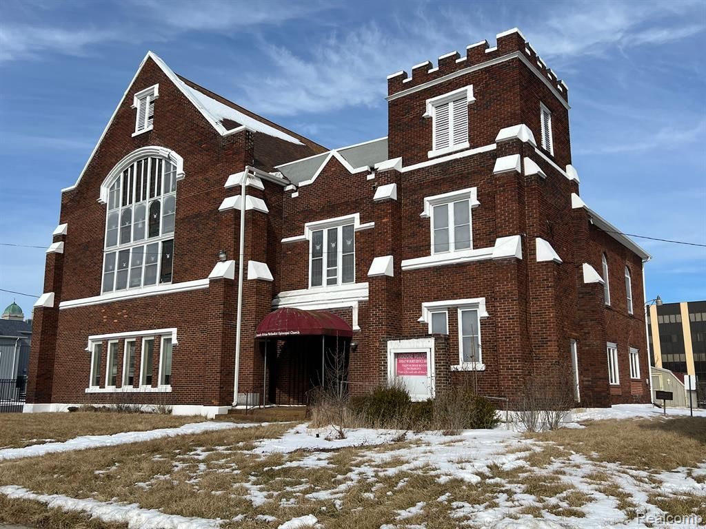 Former church building, seats 300, elevator, has Gym, dining area, commercial kitchen classrooms/offices- 11200 sq ft. Parsonage: 1340 sq ft has 3 bed room, 2 restrooms, den, living, dining, kitchen, unfinished basement. NOTE: property has been vacant for over 3 years and is being sold in its AS IS condition- no heat/elec/water.