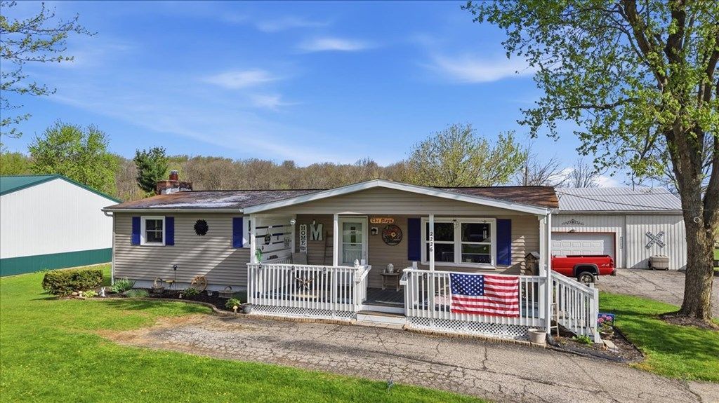 Welcome home to this well-updated 3-bed, 1-bath ranch on nearly 0.6 acres in Shelby! This 1,104 sq ft home features a covered front porch, bright living room, and a large U-shaped kitchen with newer cabinetry, tile floors, and stainless steel appliances. Three bedrooms with ceiling fans, full bath, and efficient heat pump system (new 2020) round out the main level. Finished basement offers a rec room, workshop space, and laundry. Major updates include: freshly painted interior (2022), new roof and gutters (2016), new water heater and water softener (2020). Outside enjoy an updated and expanded back deck, plus a 28x32 pole barn, 12x32 enclosed lean-to, and a 14.6x16.6 shed with electric. Schedule your showing today!