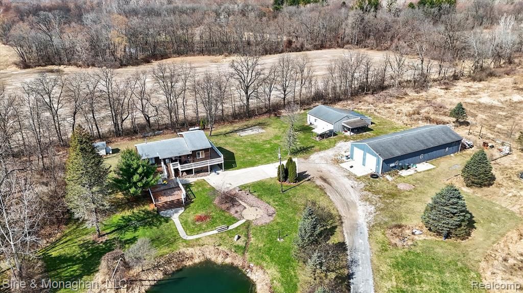 Hard-to-find 7-acre property offering privacy, versatility, and a setup you rarely see come to market. Tucked back with a pond and scenic views, this property delivers the space and functionality buyers are actively searching for. The raised ranch home features a walk-out basement, cathedral ceilings, and a wrap-around porch/deck overlooking the water—perfect for enjoying the setting year-round. Warm wood finishes and an open layout create a comfortable, inviting feel. The real value is in the outbuildings—two large pole barns, both temperature controlled, including a 30x80 barn with 12’ ceilings and large roll-up doors, plus a 30x30 secondary barn. Ideal for contractors, business owners, or anyone needing serious storage, workspace, or flexibility. All three structures are set up to operate together, with infrastructure in place for a shared boiler heating system and generator backup capability—giving this property a level of efficiency and utility that is extremely difficult to replicate. Properties offering this combination of land, privacy, and functional outbuildings rarely become available. Conveniently located just minutes from US-127.