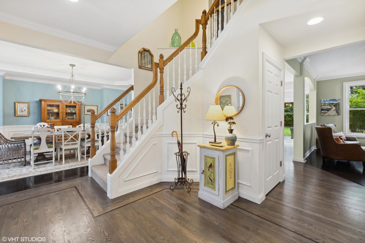 This beautifully maintained, move-in ready two story brick home is located in The Heritage subdivision, a desirable community within Stevensville with walking trails, club house, and tennis courts. The home offers over 4,000 SF of living space with a spacious kitchen, flowing seamlessly into the inviting family room and formal dining area. A dedicated main floor office or living room and convenient laundry add to the homes functionality. Upstairs, gleaming hardwood floors lead to a luxurious primary suite and three generously sized bedrooms. The fully finished basement offers a versatile family rec room, additional bedroom or office, and ample storage. With a three car garage and a beautifully landscaped half acre lot, this home is the perfect blend of elegance, space, and everyday convenience. Current owner updates include kitchen and all appliances, family room, bathrooms, flooring, HVAC (2022), roof and gutter guard (2022), interior and exterior paint, new garage doors, stone patio, and added shed. Dont miss out on this great home and schedule your tour today!