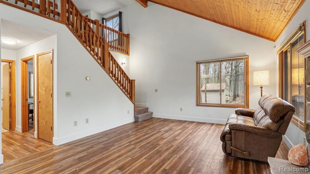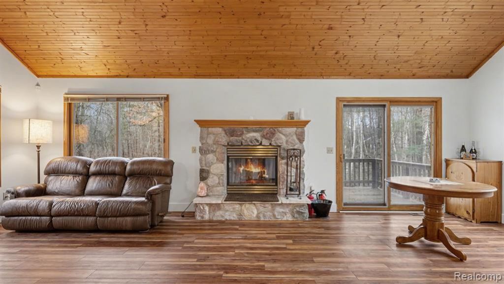 Welcome home to country living at it's finest. This charming property features over 6.5 wooded acres, 2 bedrooms, full bathroom, vaulted wood ceiling with open concept kitchen, dining, family room, appliances included, wood burning fireplace in family room, freshly painted interior, 30' x 50' detached garage with 8' x 30' workshop, shed, generator hookup, partially encapsulated crawlspace, municipal water, new hvac and water heater, new flooring throughout, new roof on garage, new front door and garage entry door, full security system with window/door sensors, alarm base, keypad, motion sensors, and glass break sensors. Hurry.... this won't last long!
