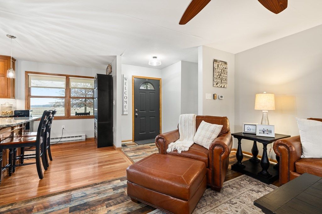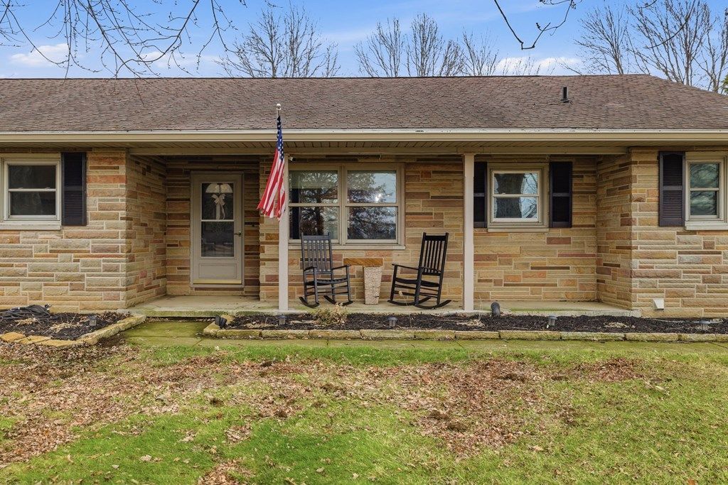 Welcome to your new home with this updated brick ranch on a sprawling one-acre lot. This 3-bedroom, 2-bathroom home has everything you could want. Step inside to a spacious and inviting living room featuring rich hardwood floors and a stunning fireplace that creates the perfect focal point for relaxing or entertaining. The warm and stylish kitchen showcases beautiful custom wood cabinetry, granite countertops, and stainless steel appliances, all complemented by natural light pouring in through large windows that frame the peaceful outdoor views. The comfortable layout offers plenty of space for everyday living, while the covered front porch provides the perfect spot to enjoy your morning coffee or unwind in the evening. Storage and hobby space are abundant thanks to a large pole barn and an additional shed, perfect for equipment or a workshop. Schedule a tour today!
