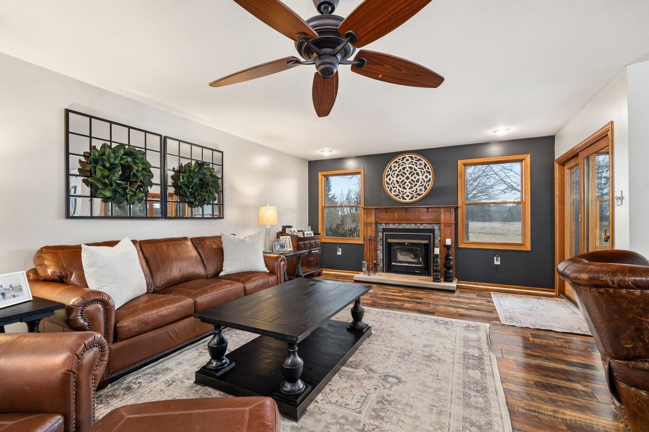 Welcome to your new home with this updated brick ranch on a sprawling one-acre lot. This 3-bedroom, 2-bathroom home has everything you could want. Step inside to a spacious and inviting living room featuring rich hardwood floors and a stunning fireplace that creates the perfect focal point for relaxing or entertaining. The warm and stylish kitchen showcases beautiful custom wood cabinetry, granite countertops, and stainless steel appliances, all complemented by natural light pouring in through large windows that frame the peaceful outdoor views. The comfortable layout offers plenty of space for everyday living, while the covered front porch provides the perfect spot to enjoy your morning coffee or unwind in the evening. Storage and hobby space are abundant thanks to a large pole barn and an additional shed, perfect for equipment or a workshop. Schedule a tour today!