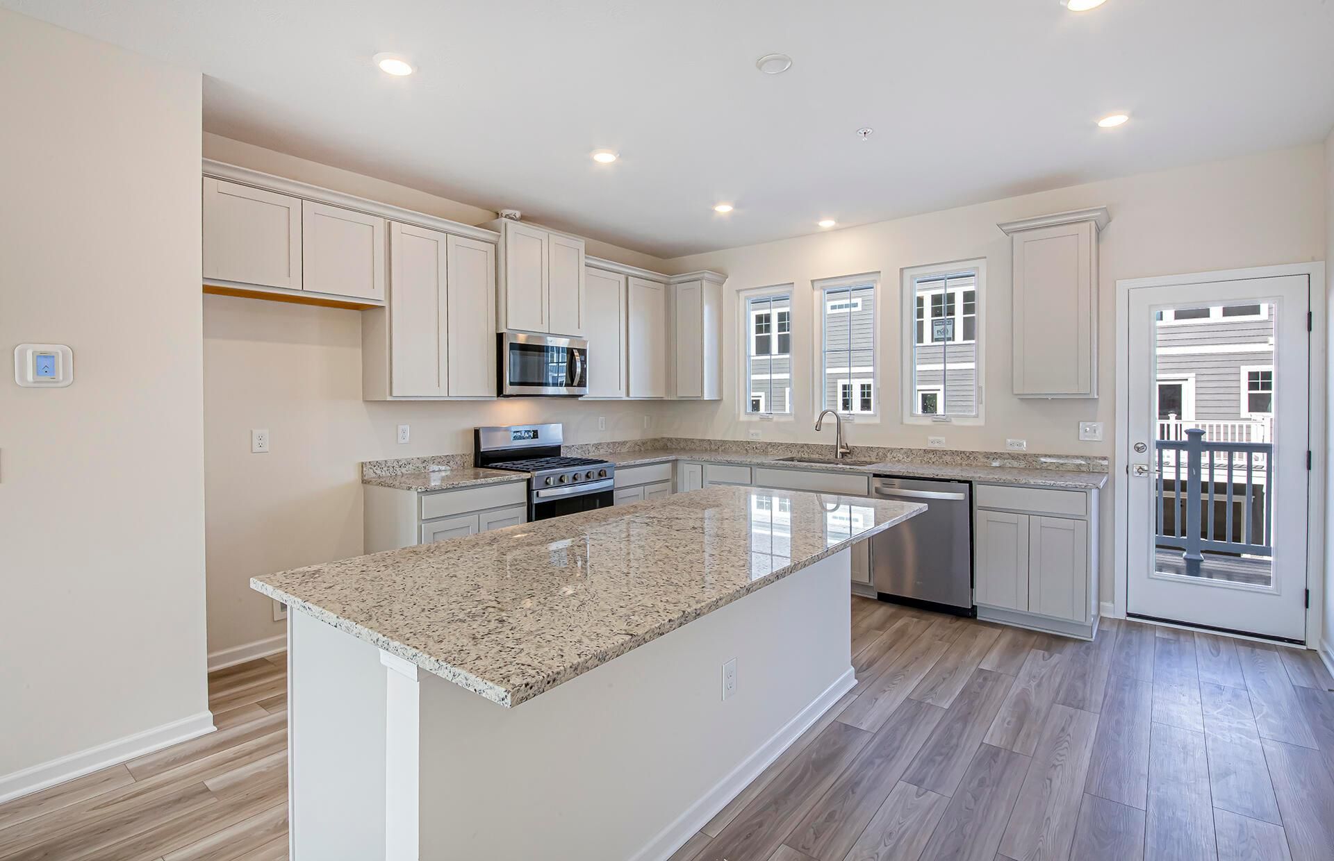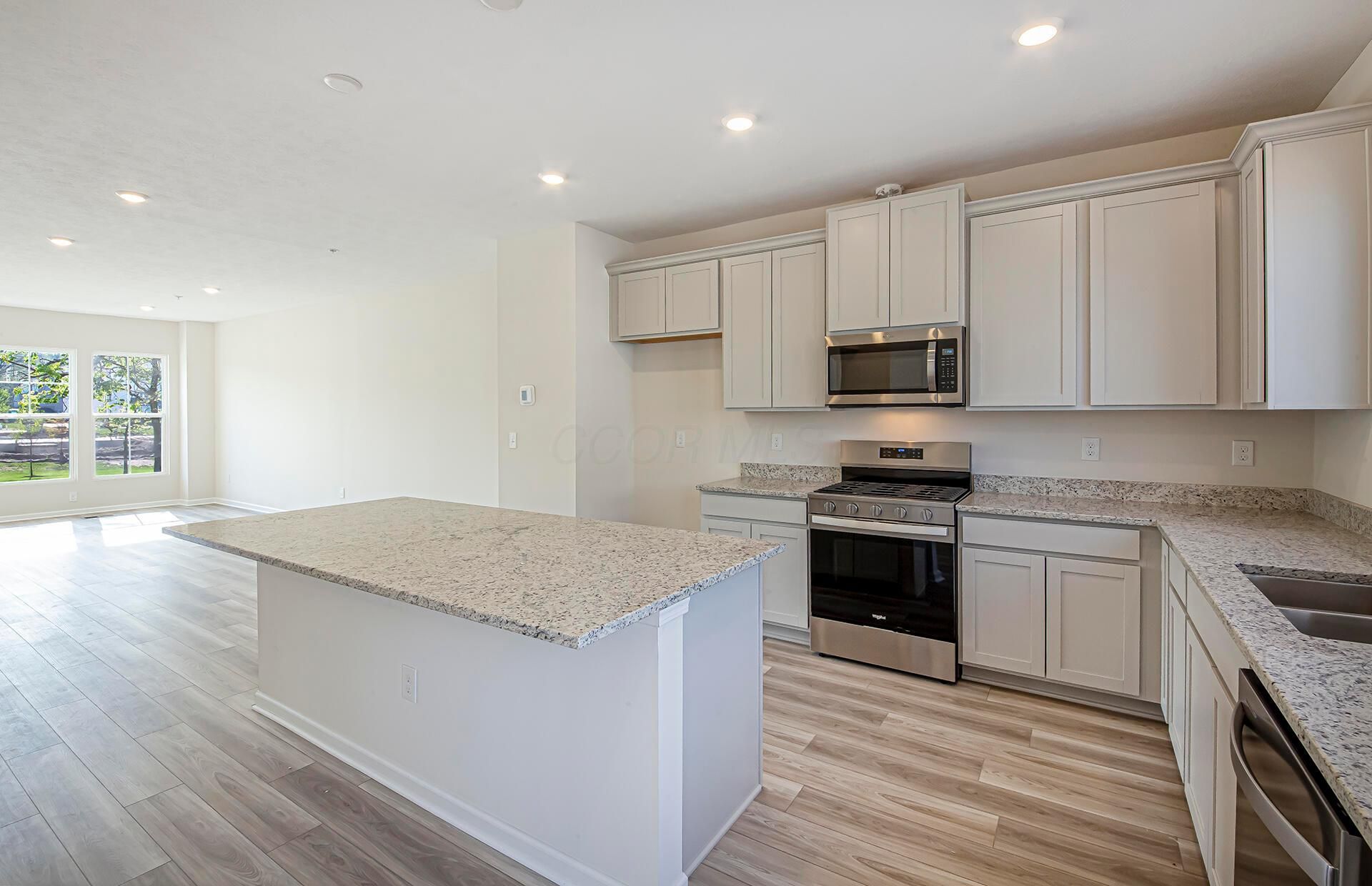 This is an amazing new 3 bed, 2 full and 2 half bath home in Towns on the Greenway. The 2nd floor kitchen stainless Whirlpool gas appliances, barnett harbor cabinets, blanco leblon granite counters and countertop backsplash, a spacious island with space for seating and a pantry for storage. An eating space, great room, powder room and a relaxing deck. The 3rd floor owners suite has a beautiful tray ceiling, a private bath with a double bowl vanity, blanco maple quartz counter, walk-in shower, enclosed toilet area and spacious walk-in closet. An add'l 2 beds, a full bath and a laundry space. A 1st floor versatile flex space, powder room, drop zone and a 2 car garage. Chrome and satin nickel finish package. Smart home features included. Gorgeous luxury vinyl tile flooring. Overlooking greenspace. Upscale townhome living, walkable to the bars, restaurants and shops of Uptown Westerville, the trails of the Alum Creek Greenway and the Westerville Community Center. This beautiful home is ready for your visit today.