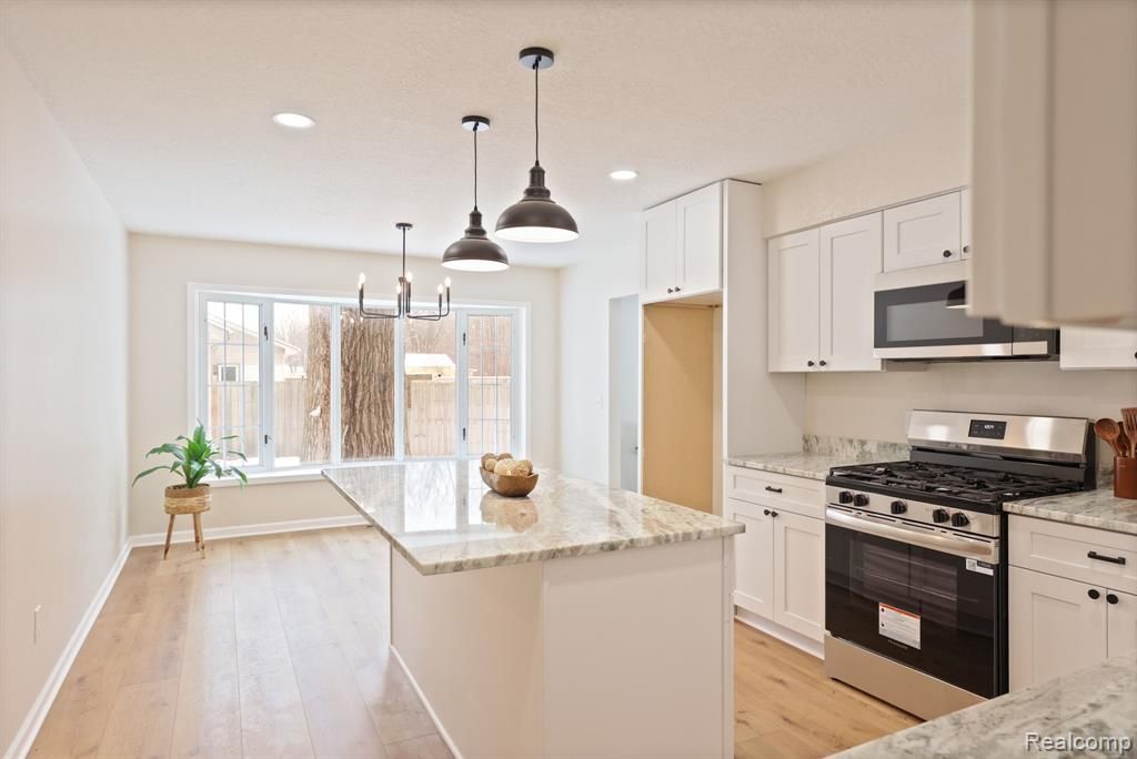 Completely renovated ranch on nearly an acre with 2 car attached garage and peaceful country setting, just minutes from Frankenmuth and I-75. The bright living room features vaulted ceilings with a brand new sliding door that opens to the backyard, filling the space with natural light. The stunning kitchen offers white shaker cabinets, a large island, and beautiful quartzite countertops, perfect for everyday living and entertaining. The primary bedroom includes a spa like ensuite with a modern tiled shower, while the first floor laundry adds convenience. Have peace of mind knowing the big things have been done: new furnace, new water heater, new roof! Enjoy the privacy of a wooded back drop while still being close to shopping, dinning, and expressways.