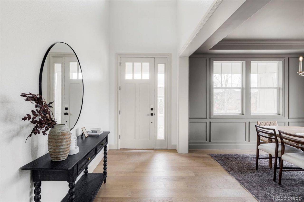 Welcome to 404 Dusk Ct in Eries highly sought-after Colliers Hill?where professionally designed interiors & exceptional upgrades meet an unbeatable community lifestyle. This fully renovated home features new hardwood floors, new carpet, fresh paint, & has been thoughtfully curated by Brim Interiors Design Firm. The formal dining room makes a statement with rich color drenching & custom wainscoting, while the heart of the home?a fully custom kitchen?offers contrasting cabinetry, a massive island with seating, quartz & granite countertops, a coffee bar, appliance garage, custom vent hood, 48 gas range, & a stunning shiplap ceiling. The cozy family room is anchored by wood beams, a stone accent wall, gas fireplace, & custom built-ins. A versatile main-floor study or bedroom features custom Roman clay walls & is paired with a designer ¾ bath showcasing marble finishes. The main-level laundry room is equally elevated with beadboard accents & custom detailing. Upstairs, a spacious loft with wainscoting & designer wallpaper provides flexible living space, along with 3 guest bedrooms & 2 beautifully finished bathrooms. The primary suite is a true retreat, featuring a spa-inspired 5-piece ensuite with wainscoting, a freestanding tub, & a walk-in shower with dual heads plus a removable option?ideal for pets or kids. The finished basement expands your living space with a large rec area, custom bar with stone accents & beverage fridge, an additional bedroom & bathroom, plus a dedicated gym room. Situated on a premium corner lot backing to a greenbelt, this home captures mountain views & offers both privacy & connection to nature. Just across the street, enjoy access to neighborhood trails leading into downtown Erie. Colliers Hill amenities include 2 pools, 2 clubhouses, 2 fitness centers, 4 playgrounds, & miles of scenic walking trails?delivering a true Colorado lifestyle. This is a rare opportunity to own a design-forward home in one of Eries most desirable communities.