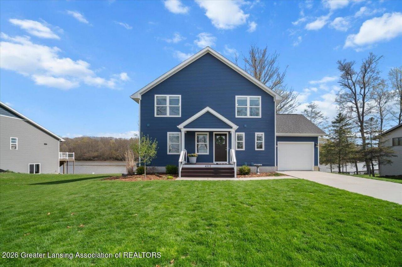 Rare dual-sided waterfront on all-sports Rainbow Lake in Perrinton?located at 4322 Gold Dust Point, one of the areas most desirable lakefront settings. This 3-bedroom, 5-bath home features 90 feet of frontage and 2,337 finished sq ft, with lake views from every living area and bedroom. A short, flat walkout leads to the dock, making access to swimming, boating, and fishing effortless. Set on a quiet dead-end street, the property offers low traffic and a more private, peaceful lakefront setting. Inside, an open floor plan with bamboo flooring and cathedral ceilings in the living and dining areas creates a bright, airy feel. The kitchen features quartz countertops and flows seamlessly to a 30 x 12 deck overlooking the water. Paired with the stamped 30 x 12 concrete patio below, the home offers a tiered outdoor living experience ideal for entertaining, relaxing, and enjoying the lake from multiple vantage points. The main level includes the master bedroom, full bath and walk-in closet, laundry and a half bath; supporting true main-floor living. Upstairs, both additional bedrooms offer elevated lake views and private full baths with tiled showers. One bedroom boasts a custom closet system in addition to a standard closet. The finished lower level adds additional living space with a full bath and a recently completed rec room by respected local builder Kurt Fedewa Builders, featuring a beverage fridge, counter space, and direct access to the patio and lakefront. An unfinished area provides flexible space for storage or hobbies. With five bathrooms total, the layout is well-suited for hosting guests and comfortable everyday living. Additional features include professionally installed UV window film, a garage with shelving, a matching storage shed, and a new seawall with steps into the water. Mature trees provide natural shade, and raised garden beds offer space for flowers or vegetables. Wildlife is abundant, with frequent eagle sightings over the lake. All appliances are included, and the home is equipped with both gas and electric stove hookups. Located just 35 minutes north of Lansing, 2 hours from Detroit, and 1 hour and 15 minutes from Grand Rapids. Designed for comfortable year-round living, this home is well-suited for full-time lake living, second-home buyers, or those seeking main-floor living in a private waterfront setting. A rare opportunity to own one of Rainbow Lakes unique waterfront properties.