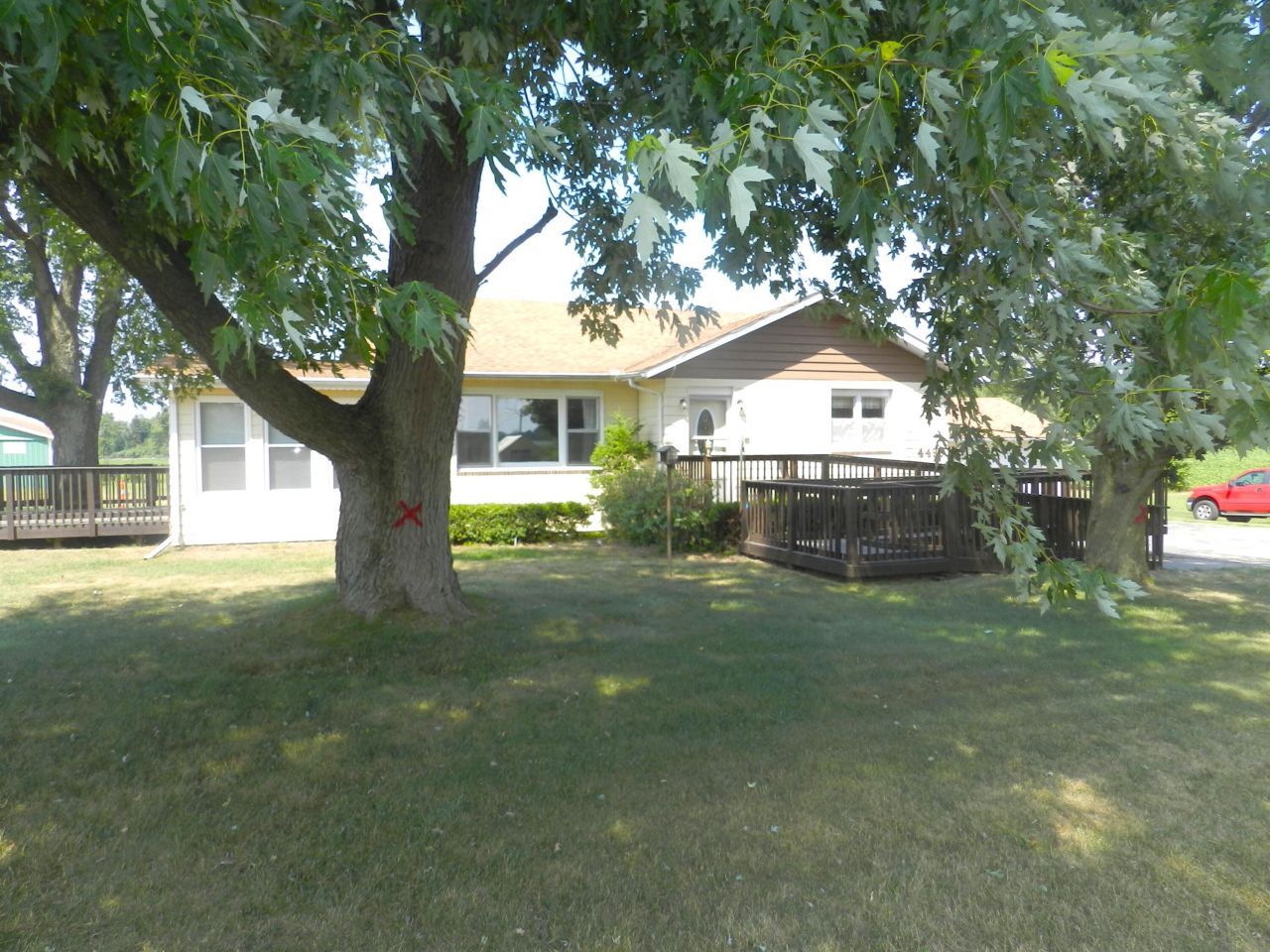 This 3 bedroom 1 bathroom home sits on over an acre of country living! 80% of home has Hardwood floors. Heated three seasons room. Accessibility ramp located at the front of home. Large back porch is perfect for entertaining. Unfinished basement with lots of storage space. Laundry hookup available in the second bedroom. Newer furnace installed in the fall of 2024. New garage and barn roof in 2022. House roof installed in 2017. Extensive pole barn with garage door allows for extra storage of ATVs, lawn mower, etc... Large detached 2 car garage.