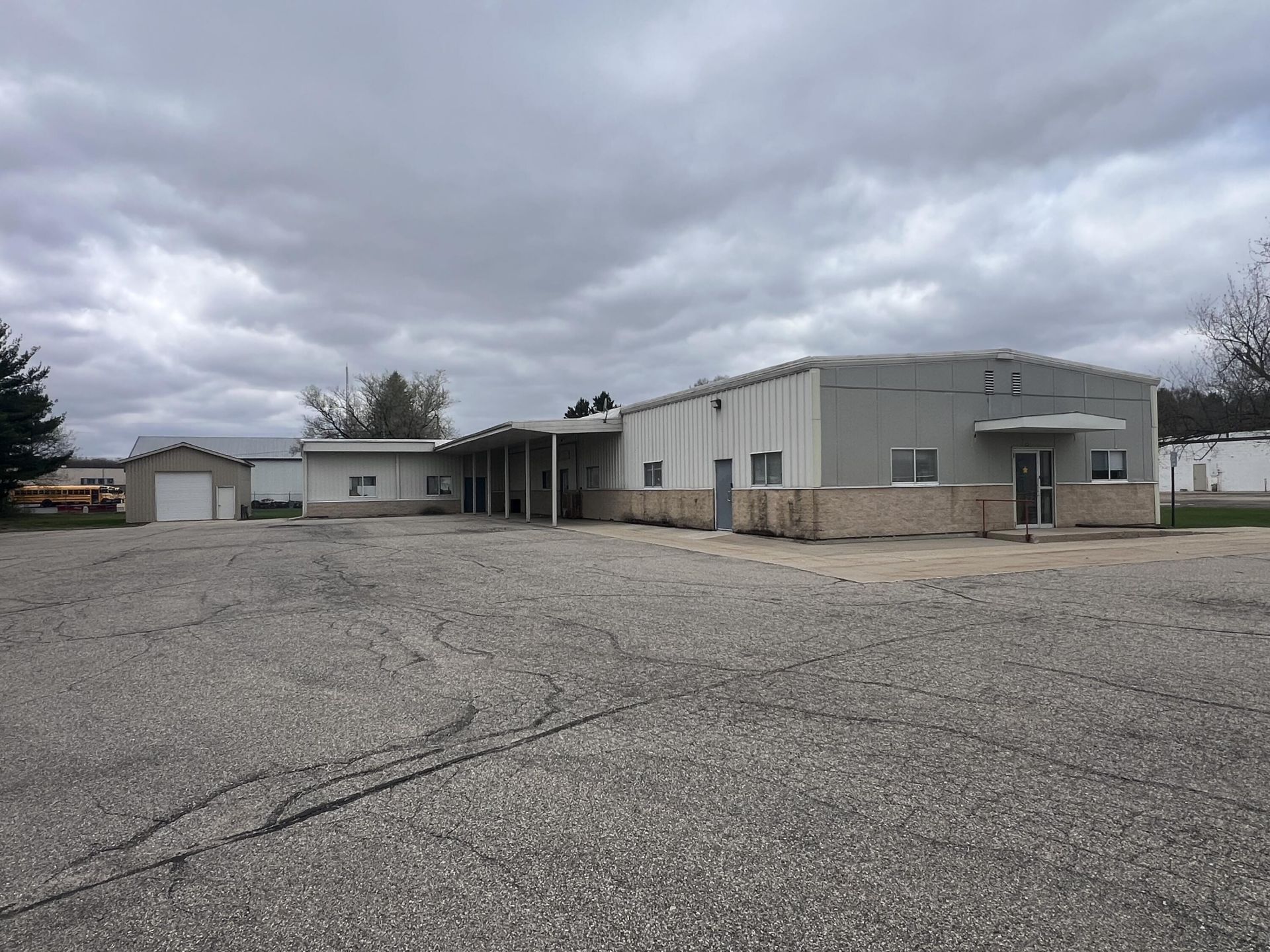 ¢ Total Structures: 2, main building and detached shed¢ Total Square Footage: 7,032 SF (steel-frame, single story with small upper utility area)¢ Parking: Approximately 20 spaces - Paved circular driveway, parking area, and detached garage¢ Zoning: Industrial (I)¢ Utilities: City water/sewer, natural gas, electricity, telephone¢ Site Features: Concrete pads, shipping/receiving bay, barrier-free ramp, chain link yard fencingboundary, ample office space¢ Steel-frame structure with a small two-story utility section¢ Double-pane windows, membrane roofing, and roof mounted air conditioning units¢ Interior: Office space, kitchen area, industrial work area, four bathrooms, storage, andshipping/receiving