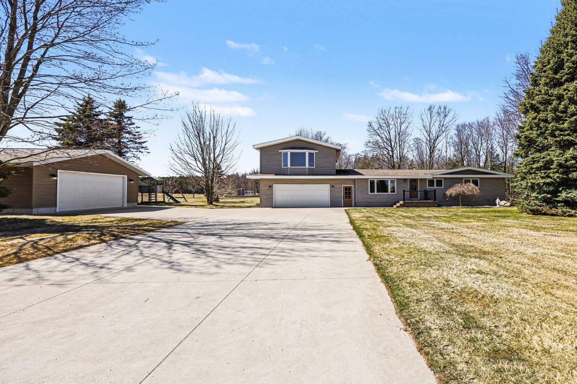 Tucked away on 19.5 beautiful acres, this charming property at 4786 Red Apple Rd offers privacy, space, and the best of Northern Michigan living. The 4-bedroom, 2-bath home features approximately 2,400 square feet of comfortable living space designed for both everyday living and entertaining.The modernized kitchen showcases rich cabinetry, granite countertops, stainless steel appliances, and a tiled backsplash, along with plenty of cabinet and counter space for storage and functionality. A large window over the sink fills the space with natural light and peaceful views of the property.Outside, enjoy a backyard retreat with a beautiful in-ground pool, a picturesque pond, and room to explore across the expansive acreage. A second garage adds valuable space for hobbies and equipment, and a full-house generator offers added peace of mind and year-round reliability.Enjoy peaceful privacy just minutes from Magoon Creek Natural Area and Lake Michigan! Call to schedule a tour!