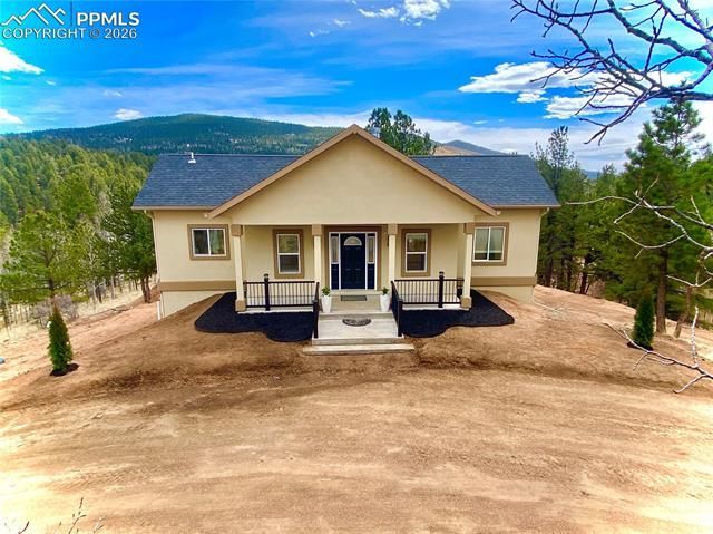 Close in mountain living with breathtaking views! Perfect as a primary home, vacation retreat or investment opportunity - great for an owner occupant or Airbnb. This beautiful custom home on a spacious 3 acre lot backs to open space and features 3 bedrooms (Primary on main, 2 secondary in basement), 2.5 baths, main floor great room, kitchen, finished walk-out basement (family room, 2 bedrooms, full bath) and a detached garage/workshop (2400 fin sq ft home + 720sq ft detached garage). The many windows allow the natural light to cascade in bright & cheerful and showcase the beautiful panoramic mountain views. The finished basement is perfect for guests or that teen wanting their own space. Beautiful upgrades and finishes including hickory cabinetry, slab granite in the kitchen, porcelain tile in the kitchen, wet bar in the walkout basement and wet rooms (baths & laundry)., vaulted / cathedral ceilings, multiple walk-out access points, custom lighting and more. Equipped with a 50-amp hookup for a hot tub and stubbed for gas on the deck - perfect for outdoor entertaining or just enjoying nature. Surrounded by beautiful foliage including Pine & Aspen Trees. A woodburning fireplace, 4-ton AC, ceiling fans and r-49 Climate Pro insulation throughout keeps this home comfortable all year long. Other features include a large garage/workshop with 10' doors and water hydrant, wiring for cable & ethernet; an upgraded 1800-gallon cistern, new septic, a 500-gallon propane tank and 220 service and more. The perfect blend of luxury and comfort makes this home a true oasis. Enjoy all that this stunning home and surrounding area has to offer. This home is a must see. Amenities abound in this fabulous community including a pool, clubhouse w/fitness center, fenced playground and library. Minutes from the town of Cripple Creek. Don't miss your opportunity. Welcome Home!