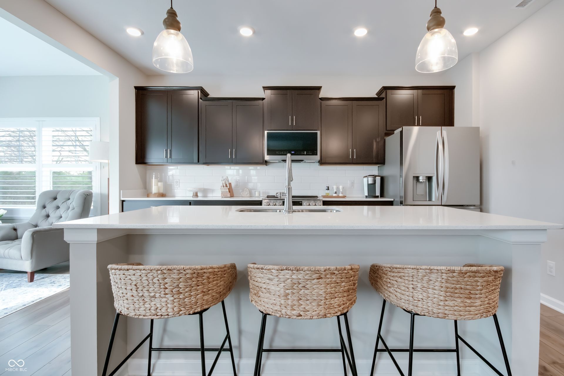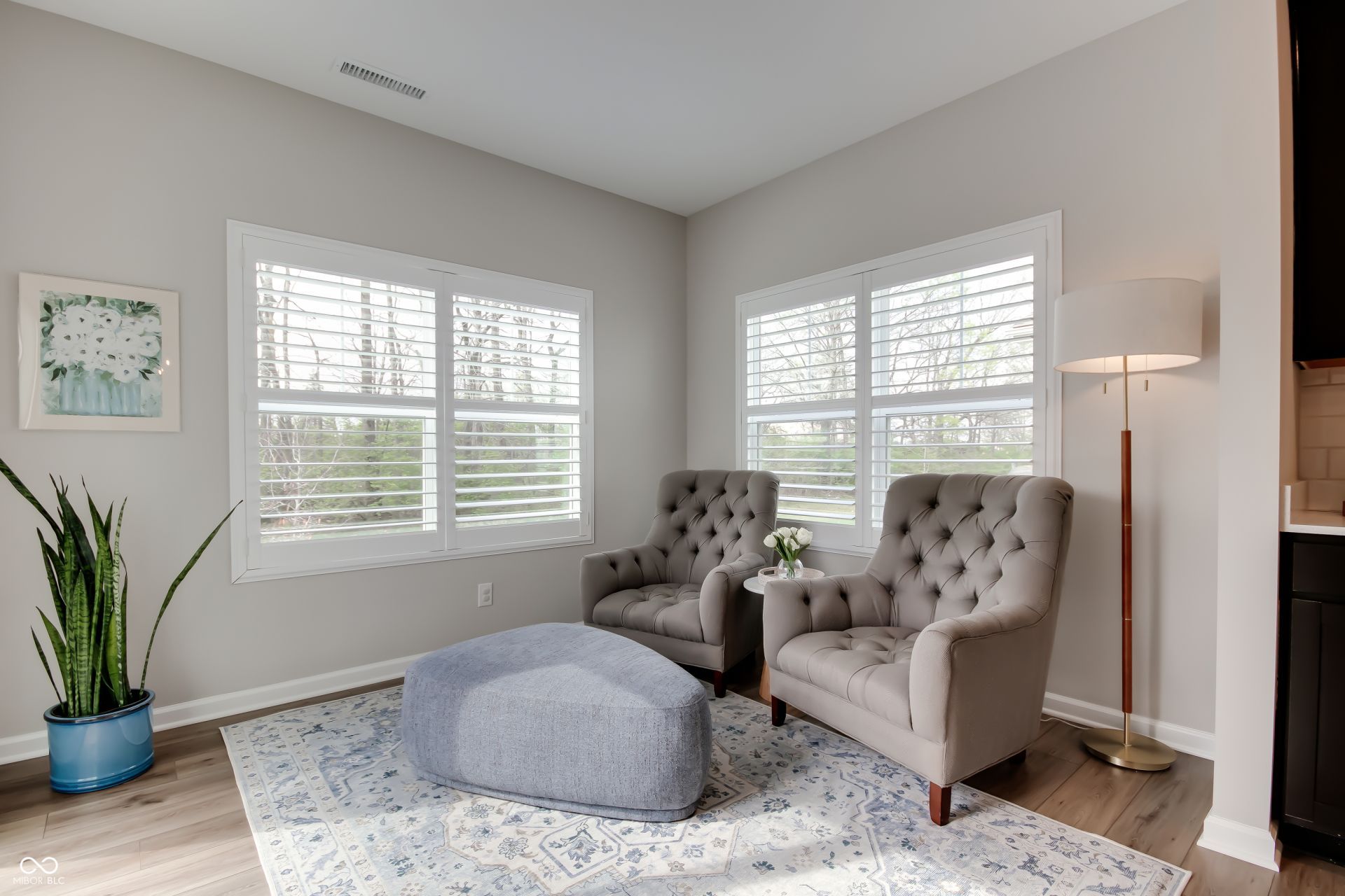 Welcome to this stunning 2024-built home that perfectly blends modern design with everyday functionality, all set against a peaceful tree-lined backdrop for added privacy and serenity. Step inside to find a spacious GREAT room filled with natural light, ideal for both entertaining and relaxing. The main level also features a versatile study or bonus room, perfect for a home office, playroom, or flex space to fit your lifestyle. You'll love the added charm of luxury shutters on the downstairs double windows, along with the inviting sunroom that offers a cozy retreat year-round. Upstairs, a generously sized loft provides the perfect second living space, media room, or hangout area, while all four bedrooms are thoughtfully positioned on the upper level for convenience. The home boasts 9-foot ceilings on the main floor, enhancing the open and airy feel throughout. Step outside to enjoy the newly added stamped concrete patio with reinforced rebar-perfect for outdoor gatherings or quiet evenings overlooking the trees. Additional highlights include a 2-foot garage bump-out for extra storage and a prime location just minutes from popular amenities like Grand Park and Clay Terrace. This move-in ready home offers the perfect combination of style, space, and location-don't miss your chance to make it yours!