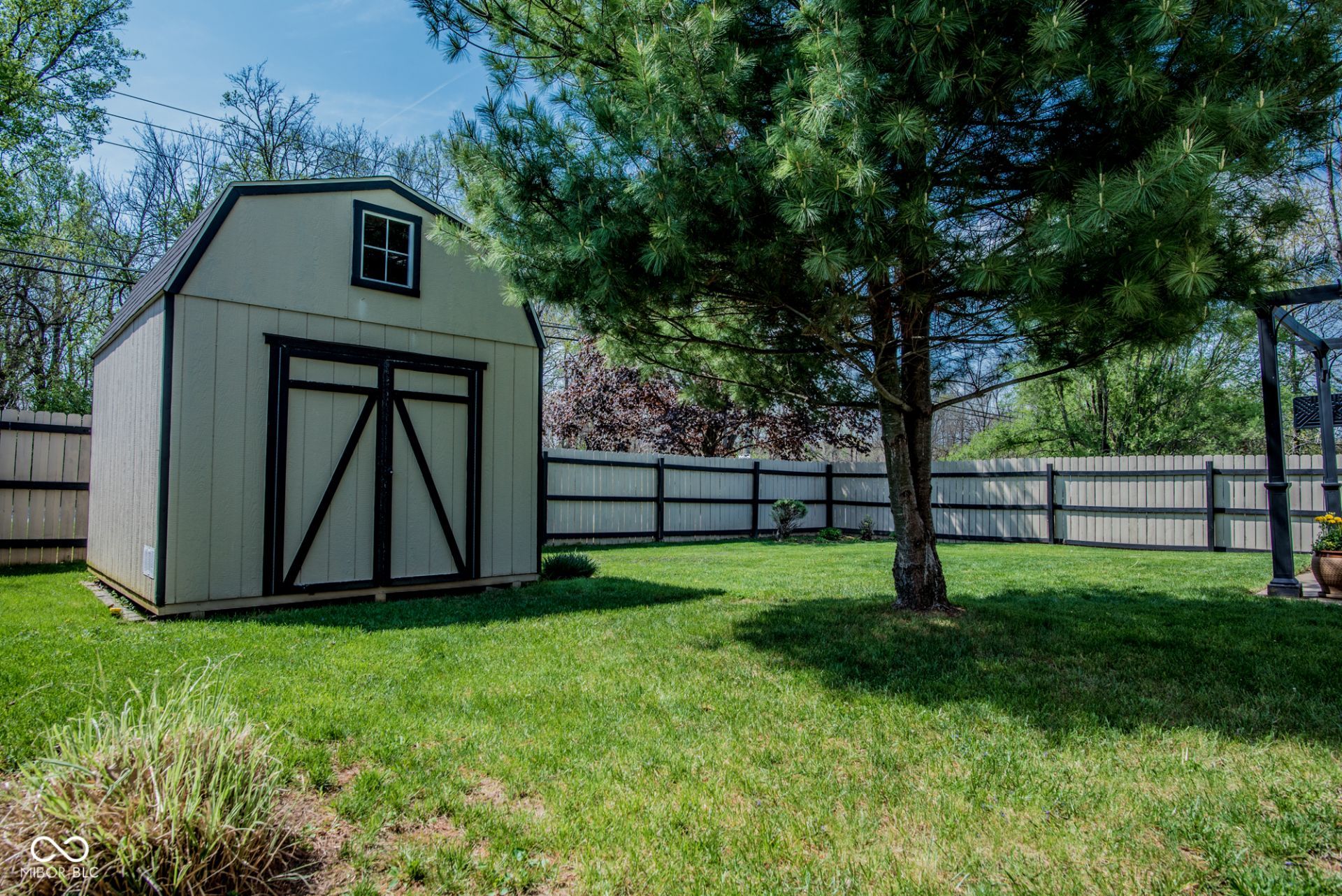 2nd-owner has meticulously updated & cared for this wonderful 2-story. Quiet cul-de-sac in neighborhood with park/playground. Great location 15 minutes from airport, proximity to downtown Indy or head south to Brown County. Exterior features storm door, newer full-rear privacy fence; large, lofted mini-barn; patio with pergola (which features a removable awning), 2 flag poles, mature trees, great landscaping, new security lights & shutters front & back. Fabulous floor plan with large rooms. NO CARPET in home - all ceramic tile & high-end laminates. Eat-In-Kitchen features custom ceramic tile inlays & center island. 5-inch wood trim, light-plate & outlet covers throughout. Super-quaint, custom half bath for your guests. All kitchen & laundry apliances stay as well as water-softener. Updated windows ceiling fans, light fixtures, toilets, plumbing fixutres. Walk-in-closets, security system, garage shelves & cabinets stay.