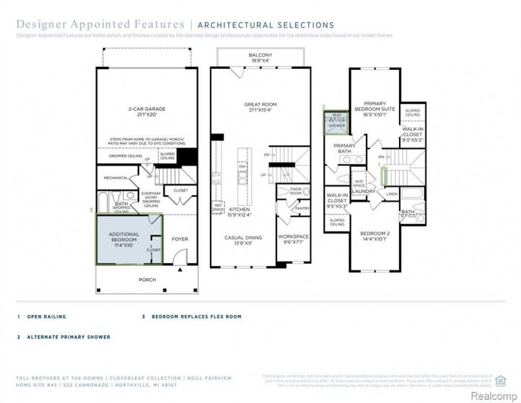 Toll Brothers At The Downs- Cloverleaf Collection Quick Move-In August/September 2026! The Neill provides three levels of luxurious comfort. The main living level features an open floor plan, connecting the well-appointed kitchen, complete with a large island and generous pantry, to a soaring great room and a casual dining area. Adjourning the great room lies a cozy balcony for entertaining and relaxation. The serene primary bedroom suite includes a generous walk-in closet with a sloped ceiling and a spa-like bath with a dual sink vanity, a private water closet, and a spacious shower. A secondary bedroom down the hall has its own private bath and walk-in closet with a sloped ceiling for your comfort and convenience. A flex room on the first floor offers opportunities for personalization, while the main living level includes a comfortable workspace. Additional highlights include a convenient powder room, a rear two-car garage, and ample storage throughout.