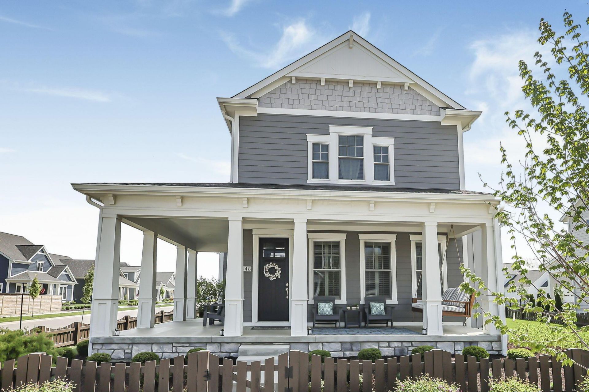 Welcome to Evans Farm--where porch living isn't just a feature, it's a lifestyle. Start your mornings on the charming front porch swing, perfectly positioned to catch the sunrise, and unwind in the evenings on the expansive wraparound porch with stunning panoramic views of this picturesque community.Situated on a premium corner lot with a .27-acre side yard, this 2023 Bob Webb-built home offers both space and inherent sophistication. Featuring 4 bedrooms, 3.5 bathrooms and thoughtfully curated upgrades you will appreciate throughout. Inside you'll find a welcoming layout with smart front to back flow. The main level features engineered hardwood, a gourmet kitchen and pantry, and private home office with custom built-in bookshelves, ideal for working from home in style.Designed for both everyday living and entertaining, the backyard has been enhanced with a newly added patio, fire pit, and fenced yard--creating the perfect setting for gatherings or quiet nights under the stars. Thoughtfully planted Redbud and Sugar Maple trees will add character, color, and long-term natural beauty to the landscape. The attached spacious 3-car garage adds convenience and functionality.The finished lower level expands your living space with a recreation room, additional bedroom, full bath, and egress window--ideal for guests or multi-generational living.Every finish has been carefully considered, from elevated plantation shutters, custom east-facing porch swing; to the new front door, reflecting both quality craftsmanship and modern design.Living in Evans Farm means enjoying scenic walking trails, local restaurants, boutique shopping, and a true sense of community with neighborhood events and gatherings year-round.Experience the perfect blend of charm, luxury, and lifestyle--this is the one you won't want to miss!