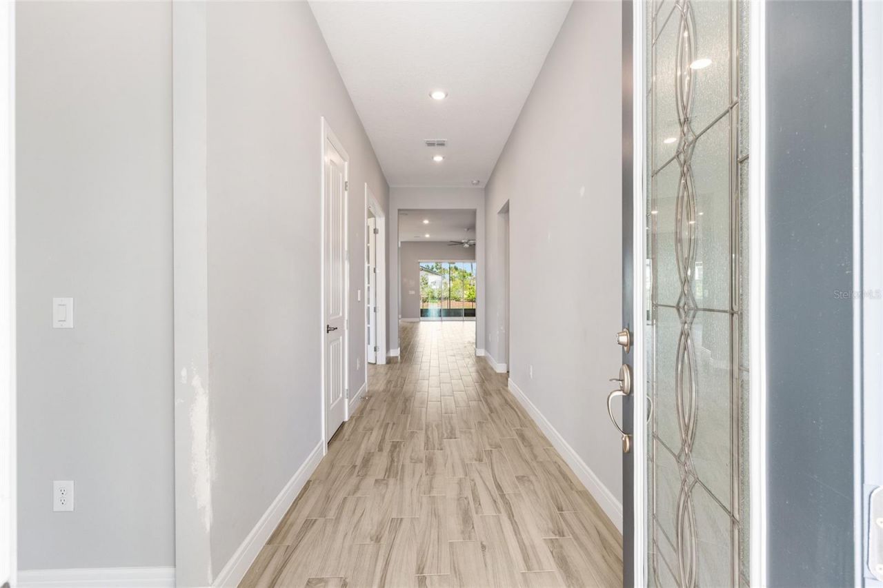Situated within the gated 55+ Stone Creek Golf Course Community, renowned for its luxurious resort-style amenities, this beautifully appointed Prestige model home blends modern sophistication with smart functionality for a truly elevated living experience. Offering 2 bedrooms, 2.5 baths, and a flexible bonus room, and your very own golf cart, every inch of this home is thoughtfully designed with privacy, versatility, and comfort in mind. Step into the contemporary open-concept layout where lofty ceilings, recessed LED downlighting, and staggered plank tile flooring tie together the gathering room, café, and kitchen, perfect for both everyday ease and effortless entertaining. The gathering room showcases a detailed accent wall and wide glass sliders that open to the screened lanai and the fenced backyard, complete with a patio designed for effortless outdoor entertaining. At the heart of the home, the chef's kitchen impresses with a large island ideal for meal prep and casual dining, crisp Shaker-style cabinetry, gleaming quartz countertops, a statement tile backsplash, a walk-in pantry, and sleek stainless steel appliances. Positioned at the back of the home for optimal privacy, the Owner's Suite offers a quiet space to retreat and a large walk-in closet with convenient pass-through access to the laundry room. The spa-inspired en suite bath features a quartz-topped double sink vanity, a Roman-style walk-in shower with elegant glass tile accents, a private water closet, and a transom window that bathes the space in soft natural light. The generously sized secondary bedroom, perfect for guests or flexible living, features a walk-in closet, a charming bay window, and its own full bath complete with a linen closet. Additional highlights include a guest-friendly powder room, a dedicated interior laundry space, 2 faux wood blinds throughout, and a Smart Home package featuring a video doorbell. You'll also appreciate the whole-home surge protector for peace of mind, a water softener system, and a spacious two-car garage with overhead storage and durable epoxy-coated flooring. Step beyond this thoughtfully designed home and into a vibrant, amenity-filled community where each day feels like a retreat. With a 24/7 staffed gated entrance ensuring both security and peace of mind, you'll enjoy comfort, connection, and convenience at every turn. Luxury-inspired amenities include heated pools, a state-of-the-art fitness center, a spa, and relaxing hot tubs and saunas. Stay active with pickleball, bocce, tennis, and a softball field, while a dedicated lifestyle staff curates entertainment, activities, and special events to foster connections. Just beyond the gates, enjoy a golf course, pro shop, and restaurant, perfect for socializing and unwinding. Make your move today and experience resort-style living at its finest!