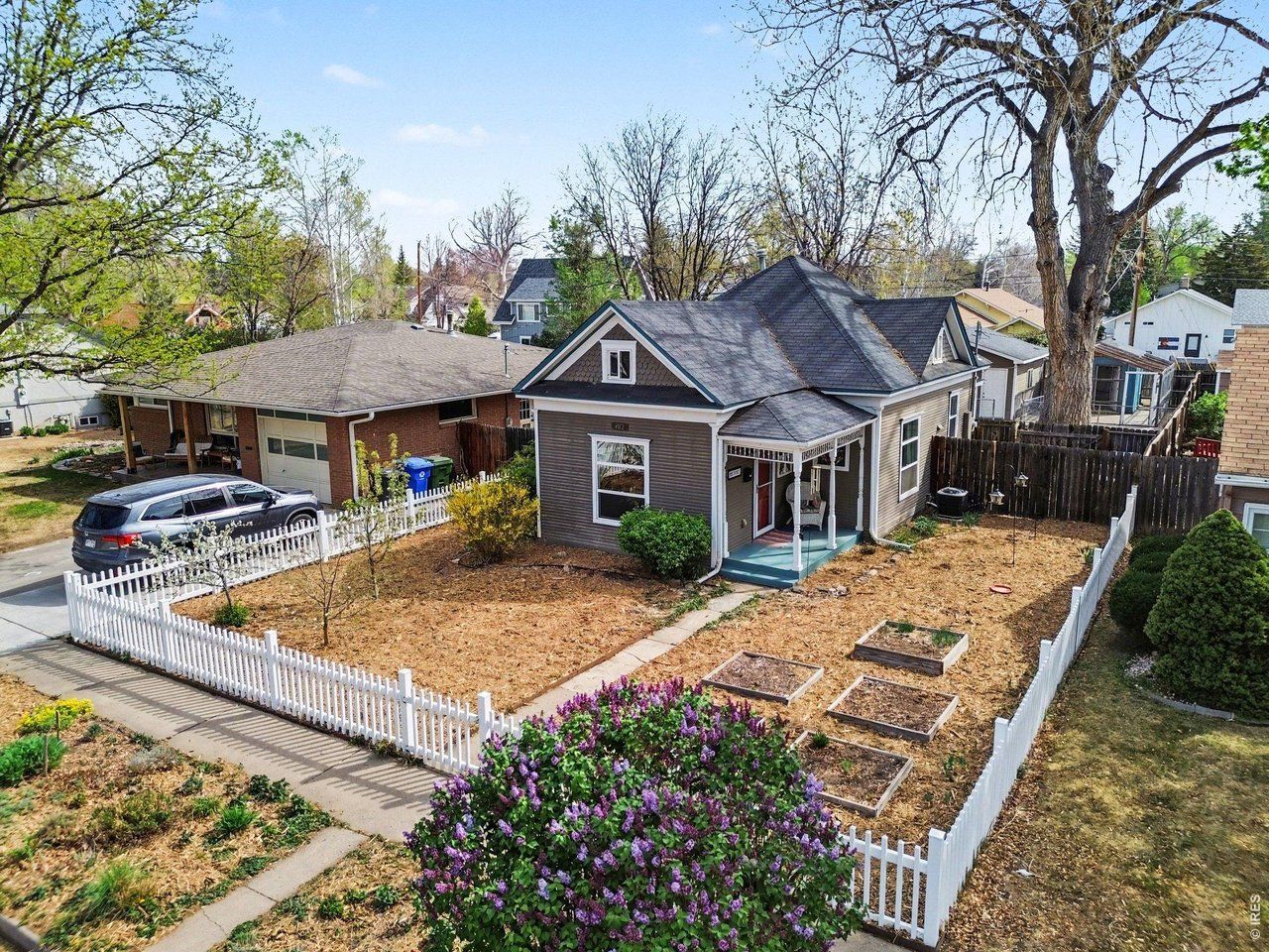 Charming 2-bed, 1-bath bungalow in Downtown Loveland with incredible curb appeal, ready for its next owner! The longtime owner has loved the quiet, tree-lined street and being just minutes from the heart of vibrant Old Town-full of festivals, concerts, shopping, dining, and local pubs. The home features beautiful flowering shrubs and fruit trees in the front yard, plus a custom patio and shaded backyard perfect for relaxing or entertaining, chicken coop/shed. Inside, you'll find an open layout with high ceilings, laminate flooring, abundant natural light from large windows, and a stunning custom stained-glass feature on the front porch that fills the dining and kitchen areas with warmth and character. There's plenty of cabinet and counter space, room for a full dining table, and a convenient mudroom leading to the backyard. A 2-car garage with alley access adds extra functionality. The furnace and A/C have also been updated for added peace of mind. Location, charm, and livability all in one-this home is truly a gem. Come see it for yourself!