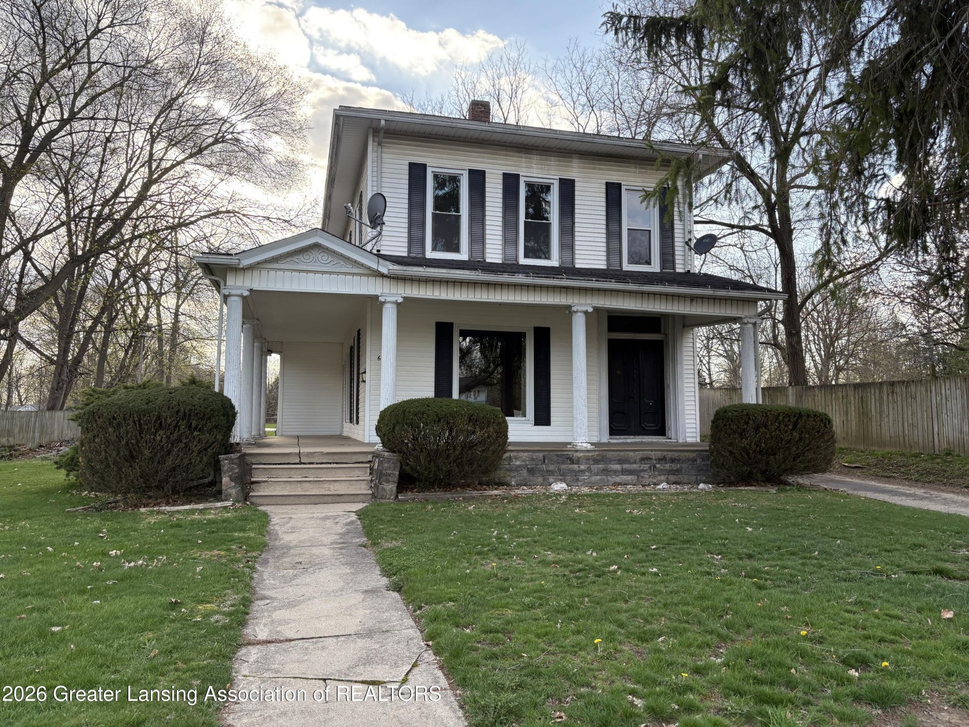 This grand Greek Revival 2-story features vinyl siding, newer style vinyl thermopile windows. Sitting high and proud, well back from the road, the wrap-around porch and corniced columns give a stately curb appeal to this grand old home. Over 2000 sq. ft. of living space on a large 1/2 acre lot with fenced back yard, a carriage house garage and an in-ground pool! The home needs some updates, but it is priced to sell!