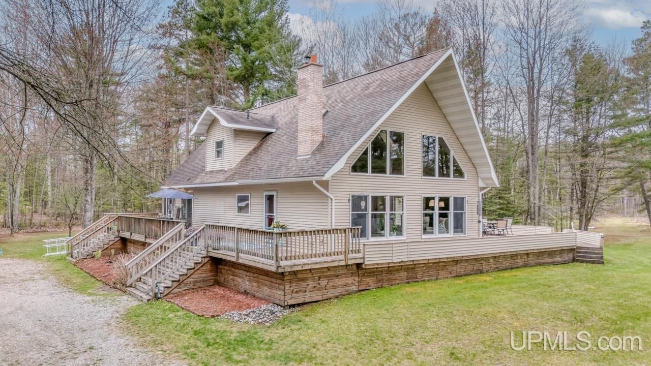 Edit mortgage details for a more accurate paymentONE OF A KIND!! Serene setting offers this 4/5 bedroom ,4 bathroom property which includes a Mother in Law Suite. This home boasts lovely views of private lake from the 3 sided deck. Inside is an updated chef kitchen with solid surface counter tops, stainless appliances, soft close drawers for pot storage and large island with seating and storage. Open concept main floor has many windows and 2 skylights in the vaulted cedar ceiling to bring the outdoors in and a pellet stove for a cozy feel at night. Main floor also has 1 bedroom and bath ,laundry and the mother in law suite with its own entrance and wheelchair access. Upper floor Primary loft has a nice seating area, good size bedroom and full bath. Basement has 1 bedroom, full bath and bonus room with legal egress plus large amount of storage.2+car garage and carport plus 20x28 workshop has lots of room for your hobbies. Large fenced garden 50x80 with underground water also. Small wildlife pond ,walking/riding trails that connect to 1000s acres of state land round up this package.