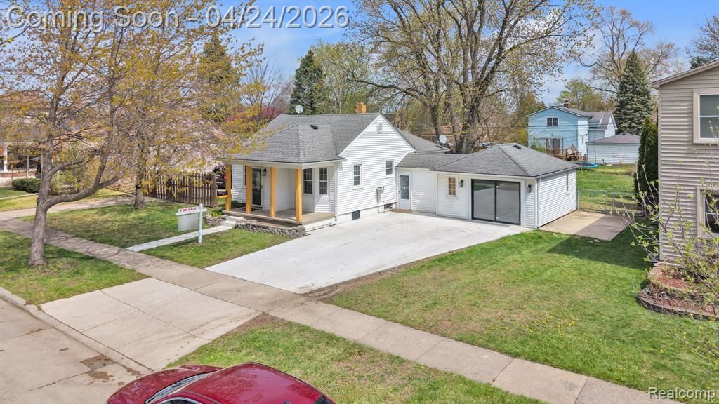 Fully updated and move-in ready ranch offering approximately 1,850 sq ft of finished living space with 3 bedrooms, 1 full bath and 1 half bath on an oversized 66x135 lot in desirable Dearborn Heights. Beautifully remodeled in 2025, this home blends modern finishes with functional space throughout. Main level features a bright open layout with refinished light-tone flooring, recessed lighting, crown molding, arched entryways, spacious living room, formal dining area, and an updated kitchen with white shaker cabinetry, stone-style countertops, decorative backsplash, black appliances, gas range, and ample cabinet storage. Two generously sized main-floor bedrooms with ceiling fans and fresh neutral décor plus a stunning updated full bath with tiled walk-in shower and modern vanity. Finished basement adds significant additional living area with a large rec room, third bedroom, second kitchen, laundry area, half bath, storage space, and walk-in closet options—ideal for extended family, guests, or entertaining. Forced air heat, central air, attached 1-car garage currently used as additional living space, and appliances included. Exterior offers excellent curb appeal with covered front porch, wide concrete driveway, patio/deck area, fenced backyard, and expansive yard with room to garden, play, or host gatherings. Prime location near Warren Ave shopping, restaurants, schools, parks, major freeways, and everyday conveniences. Crestwood Schools. A rare combination of updates, lot size, finished space, and location—schedule your showing today!