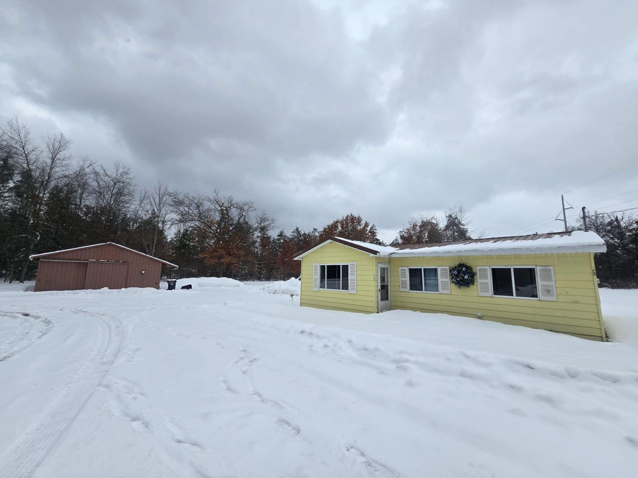 3+ Acres... 3-bedroom, 1-bath, 770+/- sq. ft. home with a detached pole building. This is a tidy and cozy home featuring an updated bathroom, a steel roof, and a high-efficiency natural gas furnace. Located northeast of Mio on a county-maintained road. Close to federal forest land.***All information herein is deemed accurate but is not warranted.***