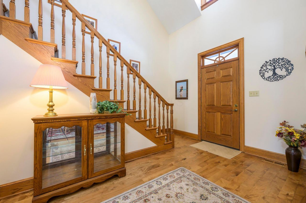 Custom 4-5 bedroom, 4 full and 2 half bath brick home with cedar accents situated on 1.34 acres just outside the city limits. Offering over 3,700 square feet of living space, this home features impressive storage and thoughtful design throughout.A sprawling front porch welcomes you into the grand foyer with an open staircase and expansive dining room showcasing maple flooring. The dining room flows into the inviting living room complete with built-ins, fireplace, skylights, and abundant natural light through custom doors and windows.The oak kitchen is beautifully appointed with granite countertops, an island, and a two-sided gas fireplace shared with the eat-in area. Large windows provide even more natural light and views of the professionally landscaped yard.The main-level primary suite offers private deck access, a walk-in closet, and a luxurious bath with dual vanities, soaking tub, and separate shower. A conveniently located main-floor laundry room sits just off the driveway entrance. An additional den or potential fifth bedroom and a second full bath complete the main level.Upstairs features three spacious bedrooms (one with en suite bath), walk-in closets, bonus space, and updated carpeting.The finished basement expands the living area with new carpet, a family room with built-ins, game area, kitchenette with reverse osmosis system, half bath, and abundant storage.Outdoor amenities include a Trex deck (installed in 2020), screened gazebo, blacktop driveway, RV parking space, storage shed, and a 26x26 detached garage with loft space in addition to the attached two-car garage.Additional upgrades include a whole-house humidifier, radon mitigation system, water softener with sulfur removal, UV filtration system, surge protection, and generator plug.Schedule your private showing today!