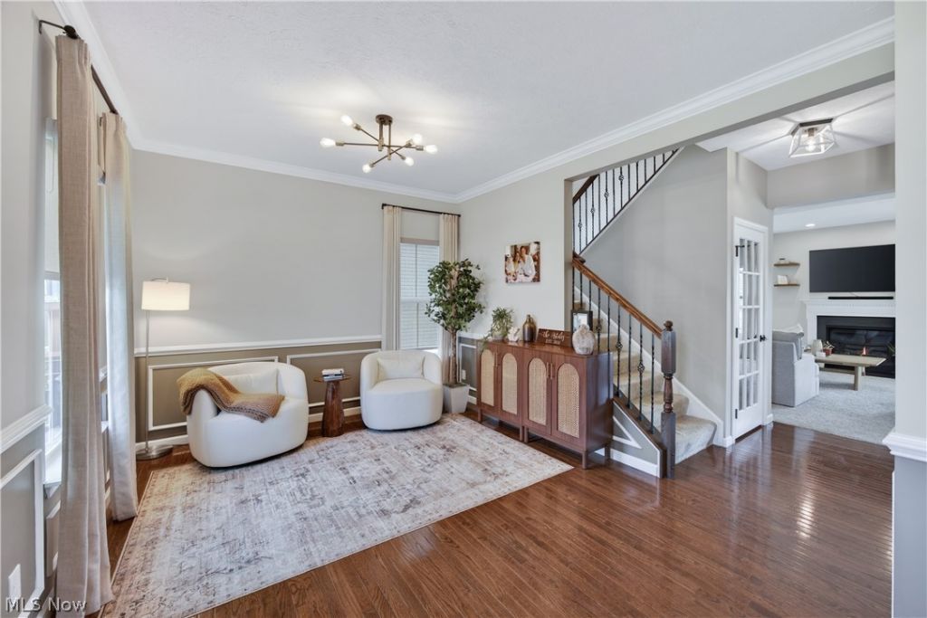 Villas of Bertram -Stop waiting?your dream home is officially here! This 11-year-young colonial is the definition of impeccably maintained and move-in ready. Designed for both daily comfort and entertaining, the floorplan offers a layout that truly adapts to your lifestyle. At the heart of the home, the chef's kitchen shines with extra-tall cabinetry, elegant tile backsplash, stone countertops, and a gas cooktop. It flows seamlessly into the sun-drenched great room, anchored by a cozy gas fireplace- even into Spring it's lovely to flip a switch for cozy warmth! Need a home office, music room, or a quiet sitting nook? The flexible front dining room is yours to define. The Bonus Features You'll Love: Outdoor Oasis: Step out to an indoor-outdoor paradise featuring an expansive TimberTech deck (2019), paver patio (2020), and a fully fenced backyard (2017). The hot tub is negotiable. Second-Floor Luxury: No more hauling baskets! The chic laundry room is conveniently located on the 2nd floor alongside four generously sized bedrooms. The primary suite is a true retreat, boasting a large walk-in closet and a spa-like attached bath. Epic Lower Level: Discover over 900 sq. ft. of beautifully finished living space. It's the ultimate spot for a home theater, gym, or playroom. Designer Touches: Upgraded light fixtures throughout and a stylish mudroom off the two-car garage keep the main level looking chic and organized. A home for ALL seasons to unwind and enjoy, truly MOVE IN ready!