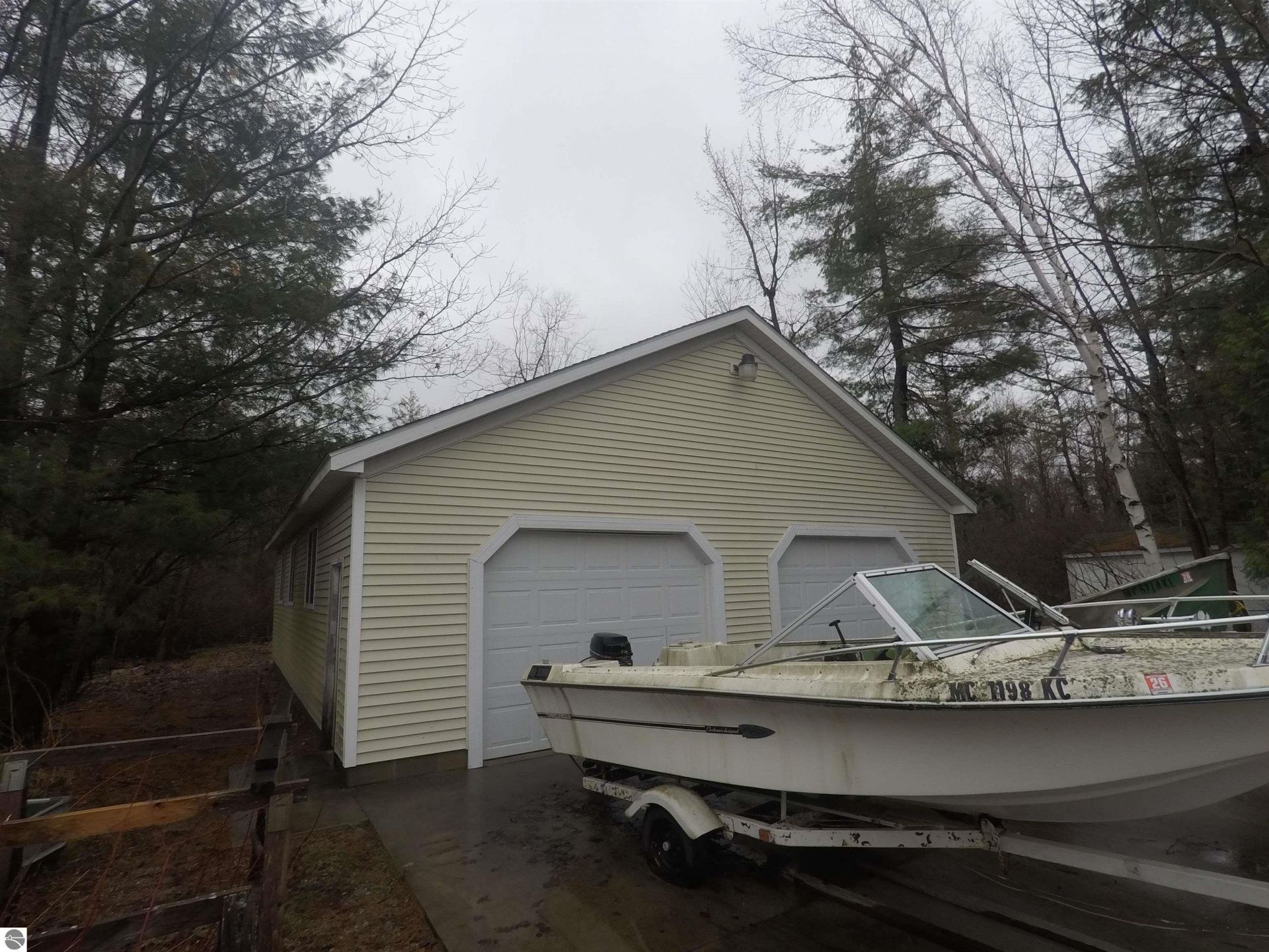 Vacant 50' x 150' lot with a 32' x 40' stick-built garage. Located across the street from Lake Mitchell with lake access to the north and south. The garage is approximately 23 years old with 8' overhead doors, 10' ceilings, underground electric, lots of windows, concrete floor, and a partitioned workshop area with a walk-through door out the back to a patio.