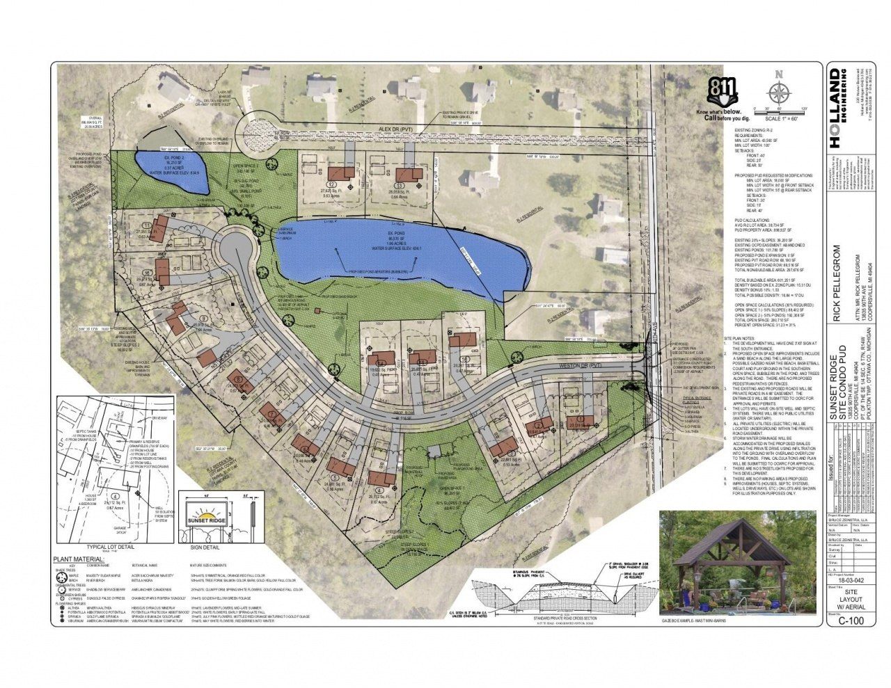 Build your dream home in beautiful Sunset Ridge in Coopersville! This 1/2 acre waterfront lot is a great building site. Build a custom home with the superior quality of Covenant Home Builders! Many great floor plans to choose from or customize something with Covenant Homes that meets your exact needs! The quality craftsmanship, custom design, and custom finishes from top to bottom are typically only found in homes twice the price! This great neighborhood has almost 8 acres of common area including a park and community pond, beach area and pickleball court! It also has access to 260 acre County Park - Bur Oak Landing! Outbuilding up to 720 sqft (24x30) allowed per Polkton Township!