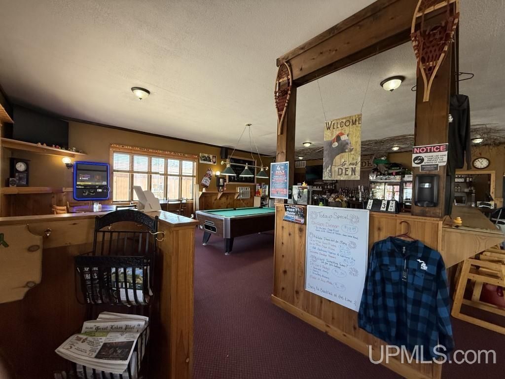 This rare all-in-one opportunity includes a spacious restaurant and bar, a 3-bedroom, 2-bath home, and a separate 3-unit motel?all perfectly positioned on 5 highly visible acres with frontage on Hwy M28 and direct access to Trail #8, a major route for snowmobilers and ATV riders. The open-concept restaurant and bar area are ideal for large gatherings, and the commercial kitchen has been significantly upgraded with a new dishwasher, cold pizza bar cooler, kegerator, 3-bay sink, industrial clothes washer, alarm system, and many updated appliances, plus new plates, and glasses. The barn has been extended and enclosed (24x30) with power, and the owners have purchased the two propane tanks for added value. A metal roof has been added over the employee entrance and front porches, and the property includes both a resort and liquor license?making it truly turnkey. The attached home features central air, a washer and dryer, new mattresses throughout, and a spacious kitchen/dining/living area with a private deck?ideal for owner living or rental income. The separate motel units have been enhanced with kitchenettes, newer cabinets, and updated appliances, offering even more comfort and appeal to guests. With recent upgrades including paved parking and a large gravel lot perfect for snowmobile trailers, this property delivers unmatched versatility, visibility, and income potential in the heart of Michigans outdoor adventure country.