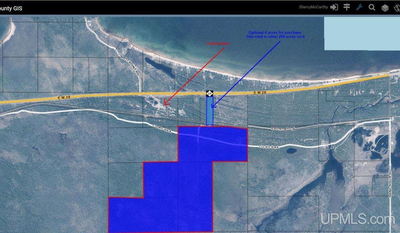 Exceptional opportunity to own approximately 280 acres of vacant land in desirable Chocolay Township, with an optional 6-acre parcel offering frontage along M-28. Ideally located just feet from Lakenenland and from the shores of Lake Superior, this expansive property features wooded, gently rolling terrain and an excellent road providing convenient access. Situated south of the Heritage Iron Ore Trail, the parcel offers both privacy and accessibility?approximately 7 minutes from Harvey and just 12 minutes from downtown Marquette. Zoned Agriculture/Forestry, this remarkable tract presents endless potential for a variety of uses, from recreation and conservation to future development opportunities. The property comprises 4 lots totaling 280 acres as well as an optional 6 acres with frontage on M28. Dont miss your opportunity! Reach out today!