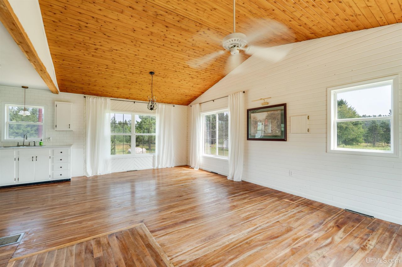 Set on 17 scenic acres in Michigans Upper Peninsula, this charming 2-bedroom, 1-bath home offers the perfect balance of privacy, natural beauty, and practical living. Just minutes from Milakokia Lake and only 10 minutes from Lake Michigan, youll enjoy a location thats central to Manistique, Newberry, and the Mackinac Bridge?yet still surrounded by peace and nature. A winding driveway leads through mature trees to a light-filled home featuring vaulted ceilings, built-in bookshelves, and an airy open floor plan. The updated kitchen and bath boast marble and tile finishes, a walk-in shower, and warm cherry wood floors. Oversized windows invite in natural light and frame picturesque views year-round. Outdoors, the possibilities are endless?ride ATVs or snowmobiles right from your property, tend raspberry bushes in the pastures, or simply take in the breathtaking sunrises. The property includes two outbuildings, one wired with 220V and formerly used as a small on-site farm store, offering potential for a workshop, studio, or guest space. With low utility costs, year-round plowed road access, and a welcoming rural community, this property is ready to be your full-time residence, vacation getaway, or productive homestead.